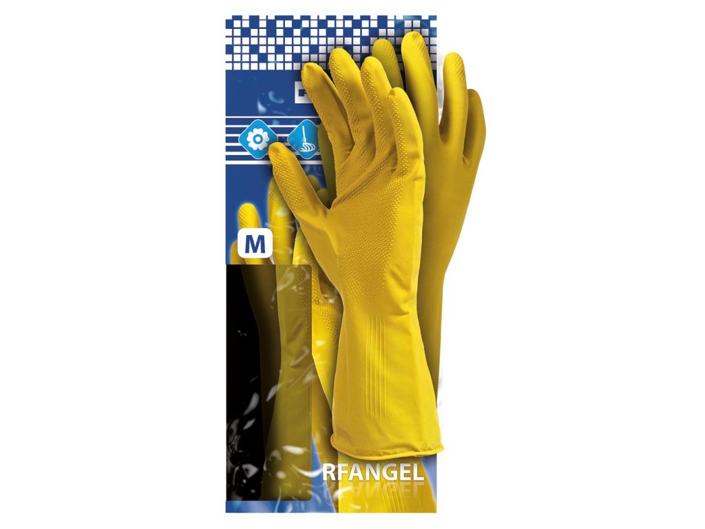 Ochranné rukavice. - Vyrobené z latexu - Vločková podšívka - vnútorný povrch rukavíc je pokrytý vločkami (bavlnený prach), čo uľahčuje ich nasadzovanie a vyzúvanie a zabraňuje spoteniu rúk pri používaní - Hrubá textúra na rukoväti, ktorá poskytuje lepšiu priľnavosť - Dĺžka: 30 cm - Priemerná hrúbka: 0,35 mm - Odolné voči roztiahnutiu - Vysoká odolnosť voči čistiacim prostriedkom a pracím prostriedkom - Vhodné na použitie v kontakte s potravinami - Každý pár je jednotlivo zabalený vo vrecku, vďaka čomu vyzerajú skvele a ideálne pre všetky druhy prezentácií - Bežne známe ako kŕdľové rukavice alebo rukavice pre domácnosťDodatočné parametre