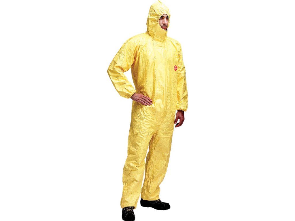 Ochranný overal Tychem®2000 C Classic Plus, model CHA5a, vyrobený z materiálu Tychem® - ochranná bariéra zodpovedajúca ochrannému odevu kategórie III, typ 3, 3b, 4, 5 a 6 - poskytuje ochranu pred rádioaktívnymi časticami, vláknami, krvou, vírusmi a baktériami - zaručuje 100% tesnosť proti prenikaniu prachových častíc a rozstreku kvapaliny pri tlaku do 2 barov - zips prekrytý dvojitou samolepiacou ochrannou chlopňou - kapucňa s gumičkou pre priliehanie k tvári a samolepiacou chlopňou pod bradou - podlepené švy poskytujú ochranu - elastické manžety na rukávoch a nohaviciach - gumička v páse prispôsobuje odev telu - má antistatické vlastnosti - chráni pred rádioaktívnymi pevnými časticami a biologickými hrozbami - dobre funguje pri kontakte s chemikáliami používanými v chemickom priemysle, na odstraňovanie nebezpečných materiálov a likvidáciu odpadu - používa sa pri odstraňovaní azbestu - spĺňa požiadavky noriem EN14605, EN13982-1, EN13034, EN1149-5, EN1073-2 a EN14126