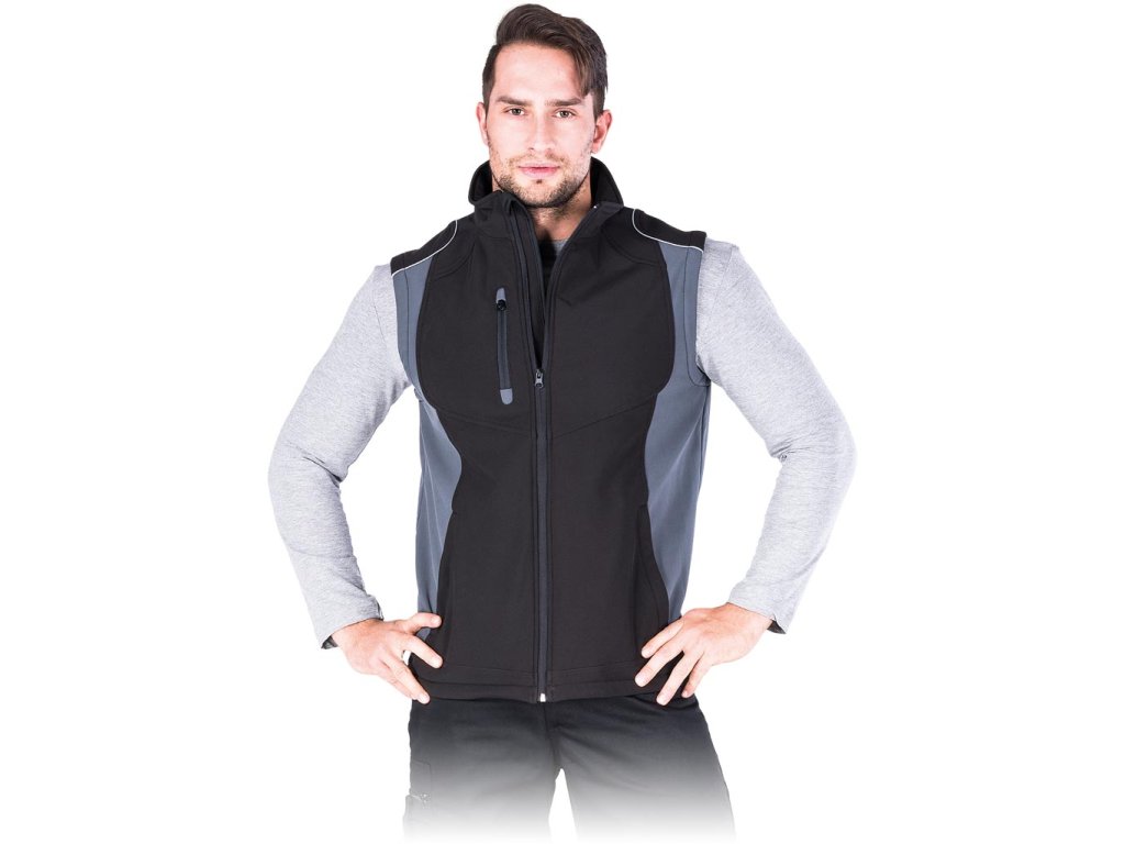Pánska ochranná vesta. - Trojvrstvový softshell materiál: 94% polyester, 6% elastan, TPU membrána, 100% polyester fleece - Hmotnosť: 310-320 g/m² - SOFTSHELL materiál - chráni pred dažďom a vetrom a zároveň umožňuje pokožke dýchať - Zapínanie na zips - Stojací golier - Dve spodné vrecká a jedno náprsné vrecko na zips - Nastaviteľná šnúrka v spodnej časti vesty - Reflexné prvkyDodatočné parametre