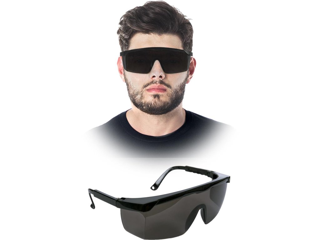 Ochranné okuliare proti trieskam. - Optická trieda 1 - Filter proti slnečnému žiareniu 5-3.1 - Polykarbonátové šošovky - Čierny nylonový rám - Tónované sklá - Nastaviteľná dĺžka ramien - Malé otvory na koncoch ramien, ktoré vám umožňujú pripojiť šnúrku, čo vám umožní zavesiť okuliare na krk - Ochranné okuliare proti trieskam sú určené na ochranu očí pred úlomkami pevných predmetov vznikajúcich pri ručnom a strojovom spracovaní kovov, dreva, plastov, keramiky, ťažbe nerastov a pod. - Poskytujú ochranu pred úlomkami malých pevných predmetov s energiou nárazu až 45 m/s (F) - Spĺňa požiadavky EN166 a EN172Dodatočné parametre