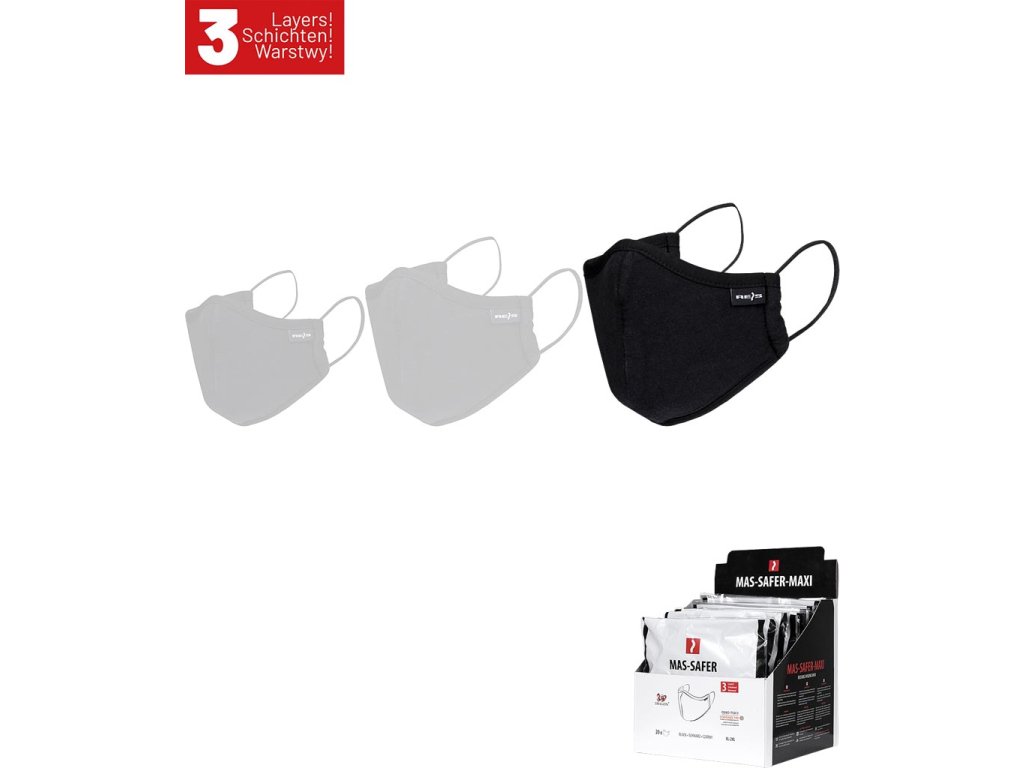 Opätovne použiteľná hygienická maska. - 3 vrstvy - Lícnica vyrobená zo 100% bavlny, 120 g/m² - Lem a gumičky z kombinácie elastanu a syntetického materiálu - Vybavené dvoma elastickými pásikmi pripevnenými na bokoch - Balené v malej škatuľke pre pohodlné vystavenie - Balené po 20 kusov v balení - Hygienická maska pomáha udržiavať čistotu tým, že zabraňuje prenikaniu výtoku z úst a nosa do okolia a bráni prenosu kontaminácie z rúk na tvár - Tento výrobok nie je prostriedkom na ochranu dýchacích ciest ani zdravotníckym zariadenímDodatočné parametre