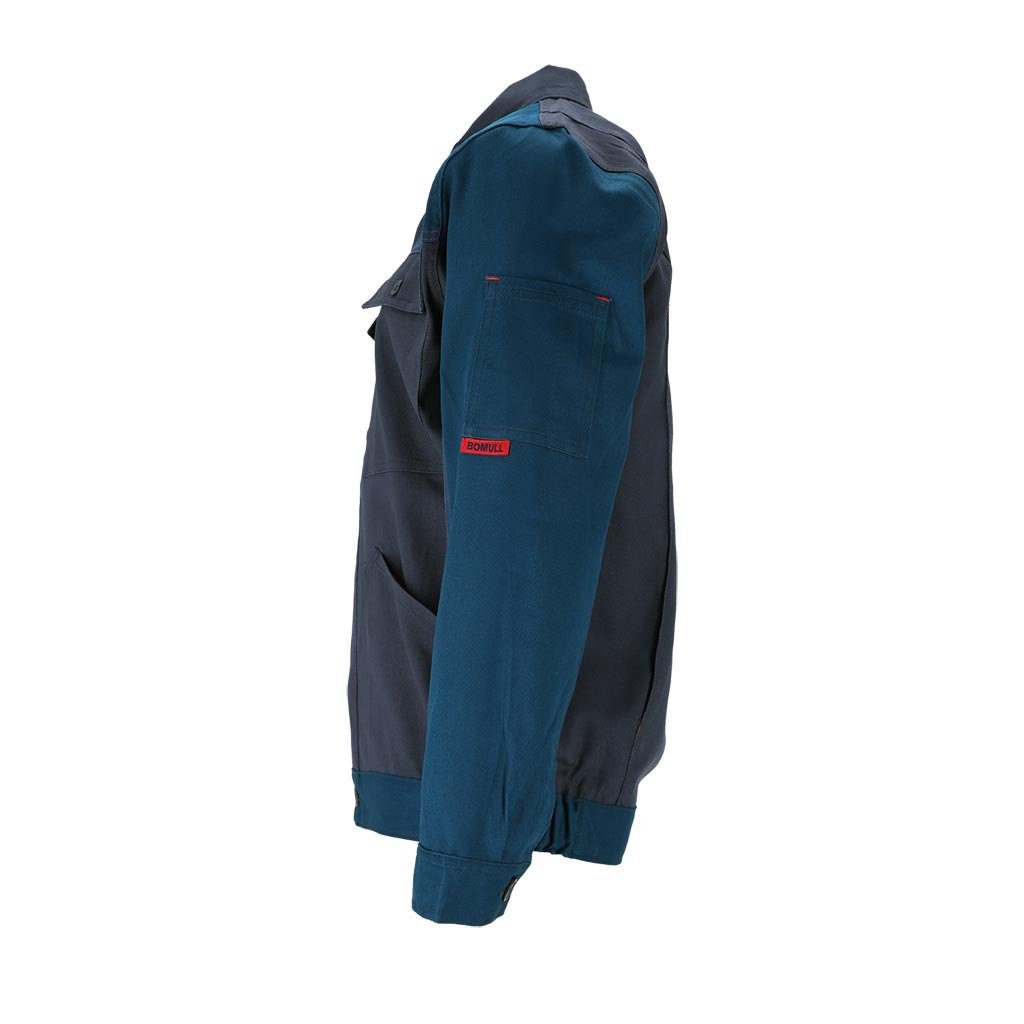 Pánska pracovná bunda BOMULL REIS. - Materiál: 100 % bavlna - Gramáž: 250 g/m² - Zapínanie na gombíky - Golier - Dve spodné vrecká a dve náprsné vrecká so zapínaním na suchý zips - Ďalšie vrecko na ľavom rukáve - Zapínanie na gombíky - Bočný elastický lem - Normálny strih - Testované na škodlivé látky v súlade s normou OEKO-TEX® 100