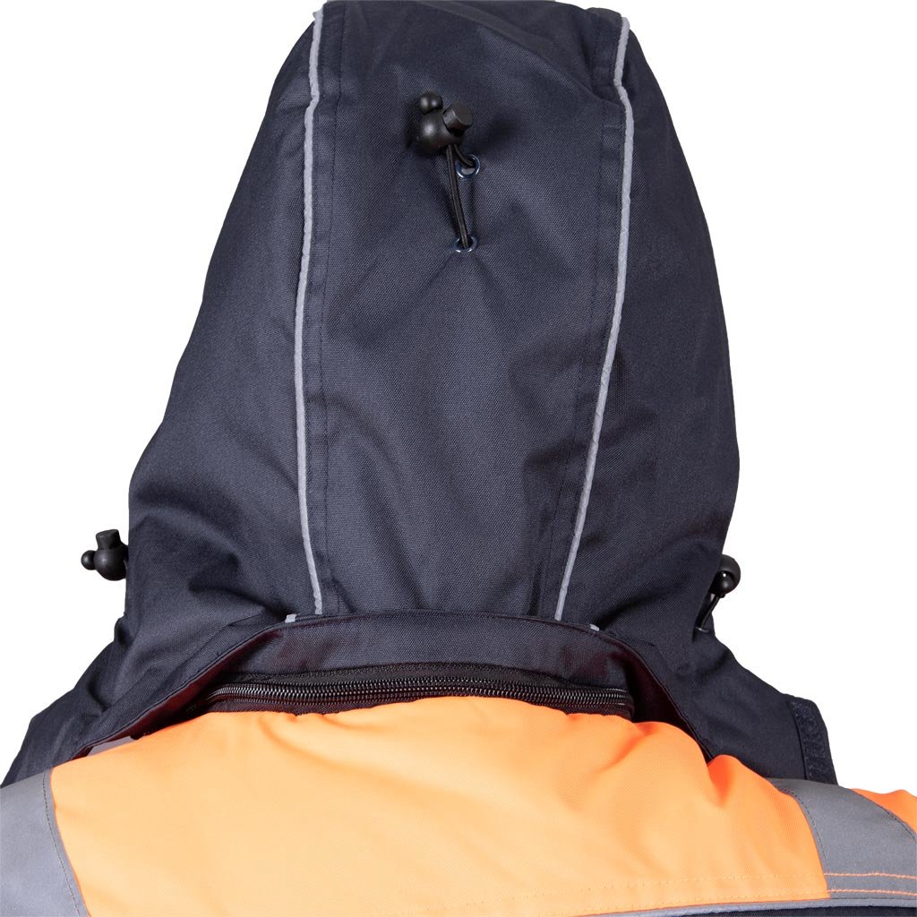 Pánska reflexná a moderná pracovná bunda ASKER L.HOLLMAN. - Vrchná vrstva 100 % polyester 180 g/m² s polyuretánovým záterom - Výplň 100 % polyester 280 g/m² - Podšívka 100 % polyester 60 g/m² - zips s dodatočným zapínaním na suchý zips - stojatý golier - odnímateľná kapucňa so sťahovacími šnúrkami a dodatočným zapínaním na suchý zips pre lepšiu ochranu hlavy pred chladom - štyri náprsné vrecká, z toho dve so zipsom - dve vrecká v spodnej časti bundy - ďalšie vrecká na príslušenstvo - Vnútorné vrecko na suchý zips - Rebrované manžety - Reflexné pruhy pre lepšiu viditeľnosť