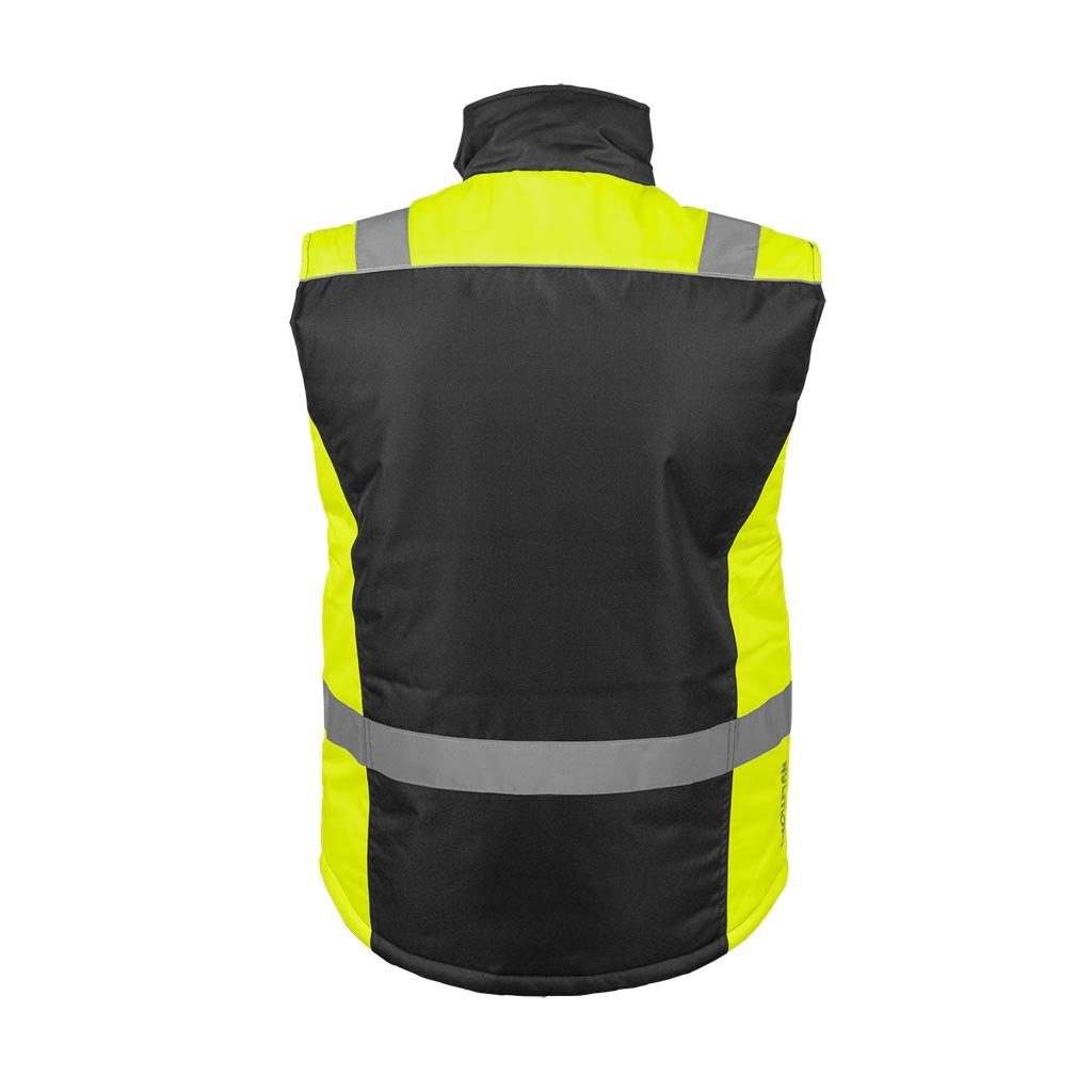 Pánska moderná zateplená pracovná vesta reflexná L.HOLLMAN. - Materiál: 100 % polyester s polyuretánovým povlakom, 180 g/m² - Výplň: 100 % polyester, 280 g/m² - Podšívka: 100 % polyester taft 210T, 60 g/m² - Zapínanie na zips s dodatočným suchým zipsom - Stojatý golier - Dve vrecká v spodnej časti vesty a dve náprsné vrecká s ďalšími priehradkami na príslušenstvo - Vnútorné vrecko so suchým zipsom - Reflexné pruhy pre lepšiu viditeľnosť