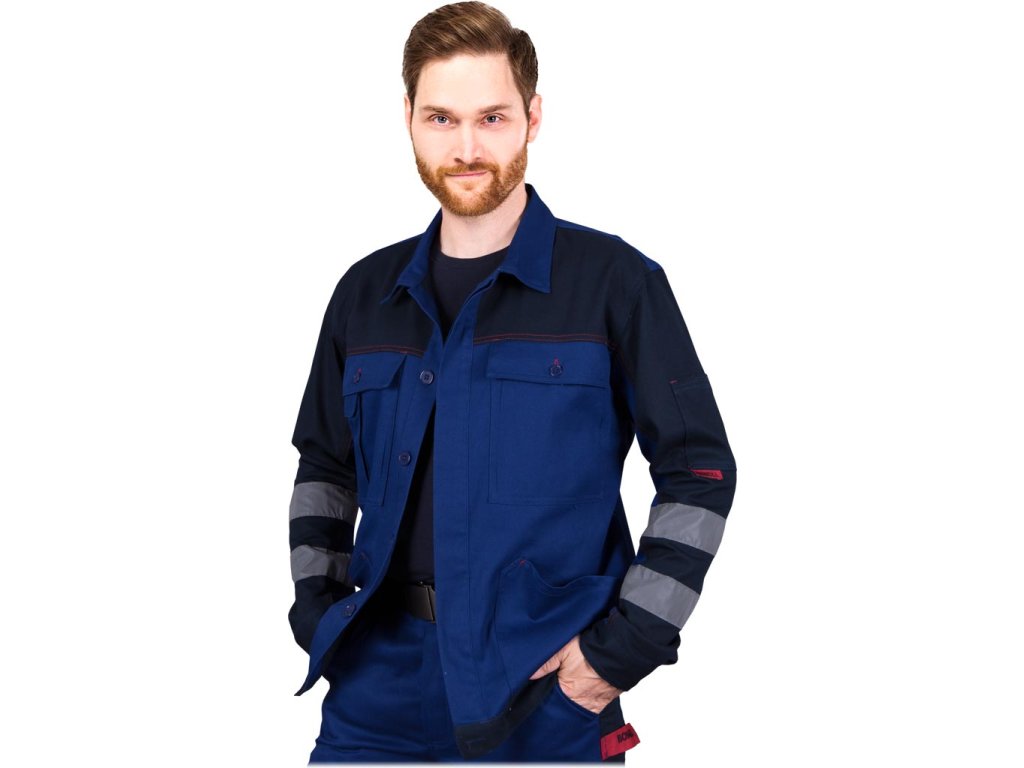 Pánska pracovná bunda BOMULLX REIS. - Materiál: 100 % bavlna - Gramáž: 260 – 270 g/m² - Zapínanie na gombíky - Tri náprsné vrecká s gombíkmi a zapínaním na suchý zips - Dve bočné vrecká v spodnej časti - Ďalšie vrecko na mobilný telefón na rukáve - Manžety na gombíky - Elastická šnúrka v spodnej časti mikiny, ktorá zabraňuje vytŕčaniu a zaisťuje lepšie prispôsobenie - Reflexné pruhy pre lepšiu viditeľnosť
