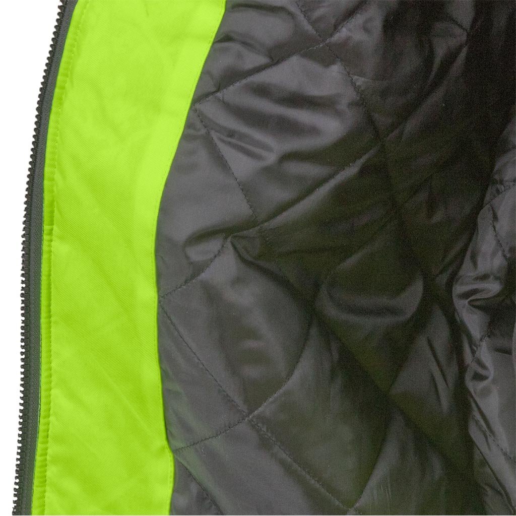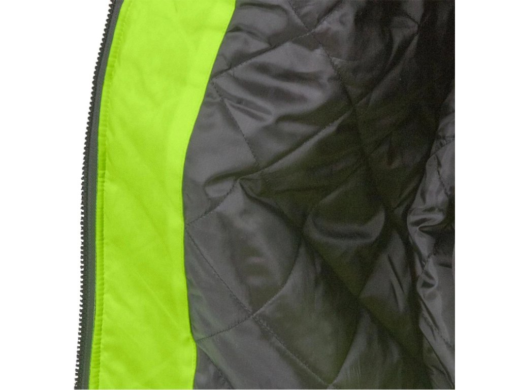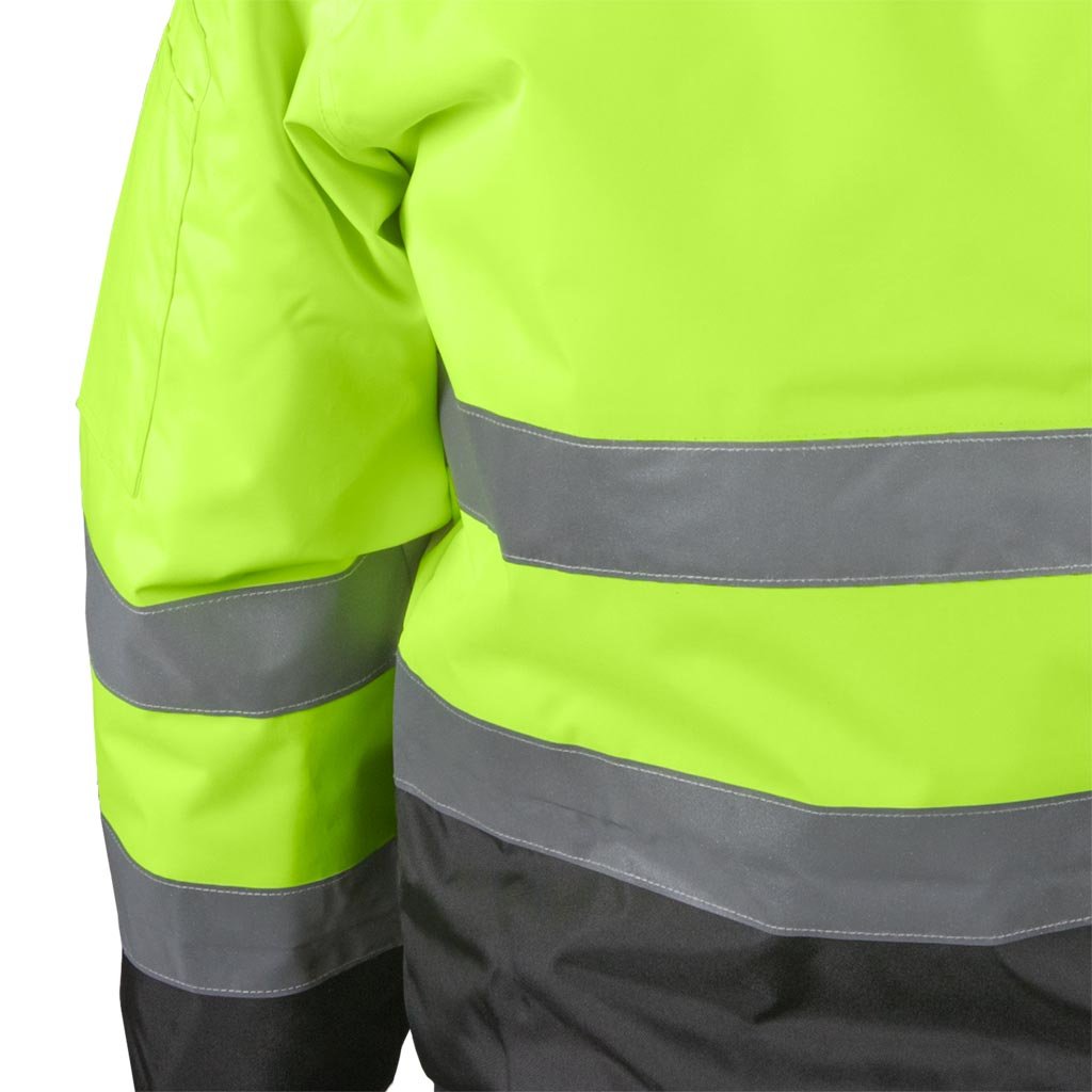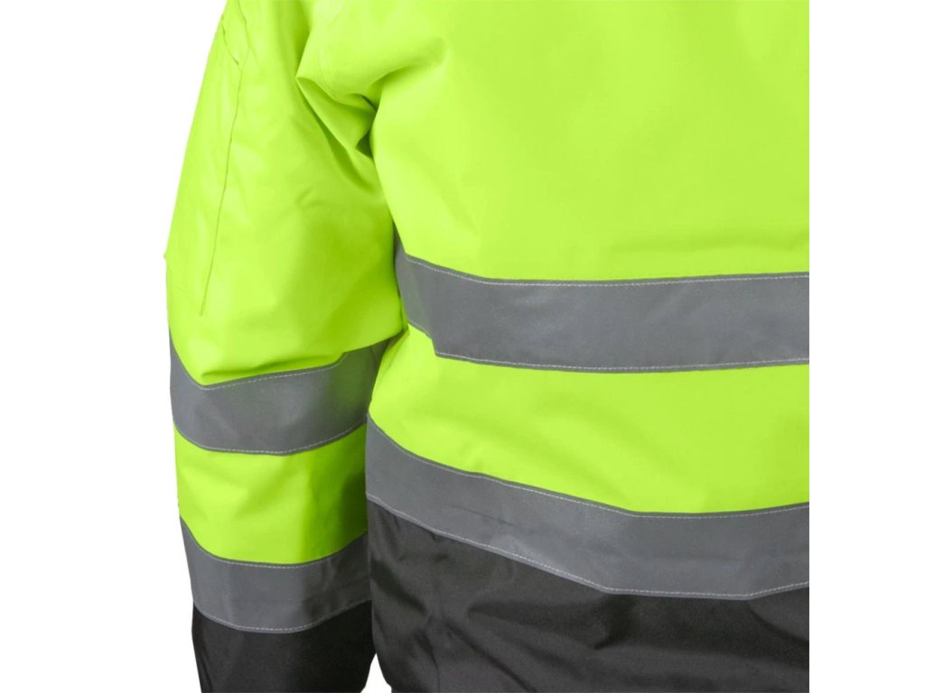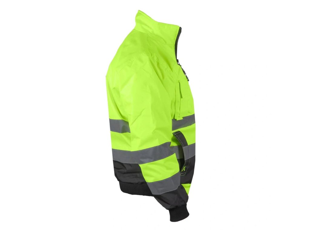Pracovná bunda XVERT pre mužov. - Materiál: 100% 300D polyuretánová vrstva, oxfordská tkanina 200g/m² - Výplň: 100% polyester 190g/m² - Prešívaná podšívka: 100% 190T polyesterový taft 50g/m² - Zapínanie na zips - Stojatý golier - Dve spodné vrecká a tri náprsné vrecká, vrátane jedného na mobilný telefón - Vrecko na zips na ľavom rukáve s ďalšími priehradkami - Vnútorné vrecko so zapínaním na suchý zips - Klip na kľúče - Rebrované manžety a lem - Fluorescenčná tkanina a reflexné pruhy pre zvýšenú viditeľnosť - Ideálne pre cestné hliadky a iné orgány činné v trestnom konaní