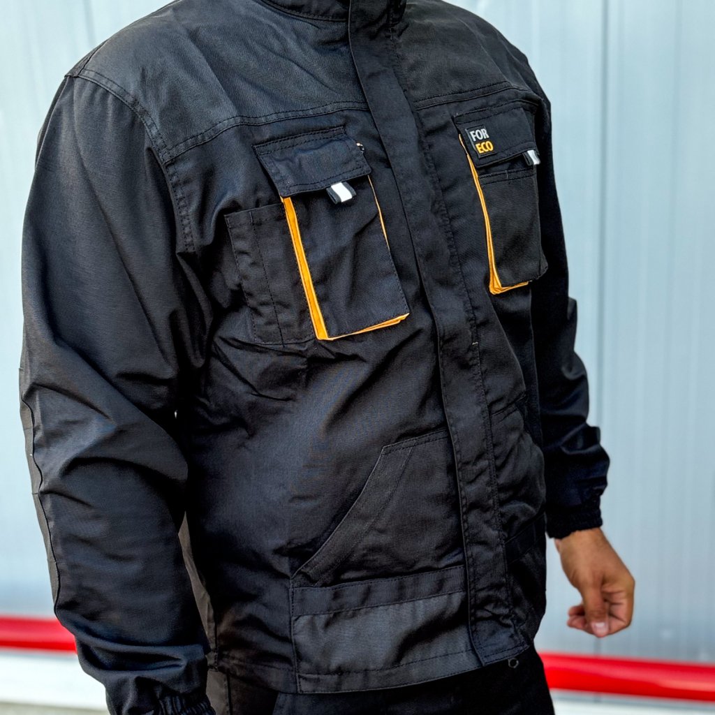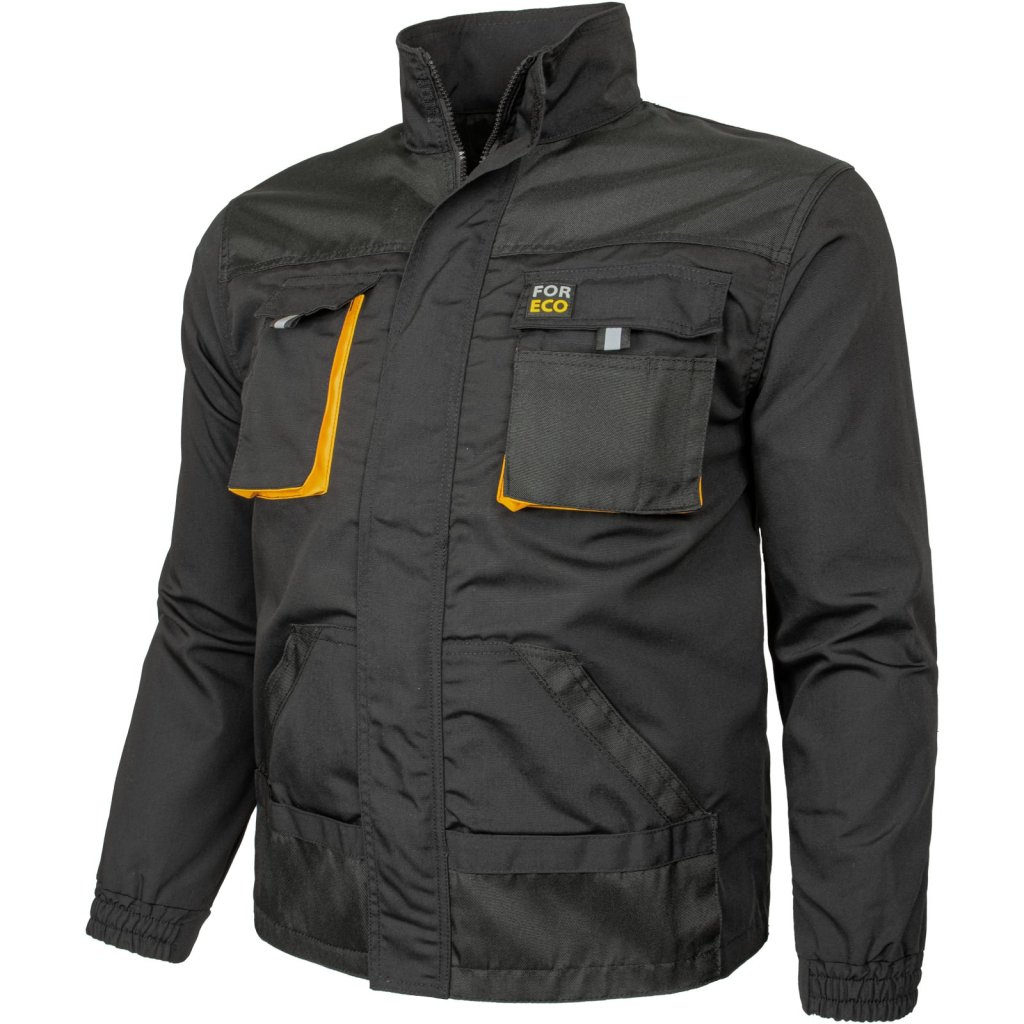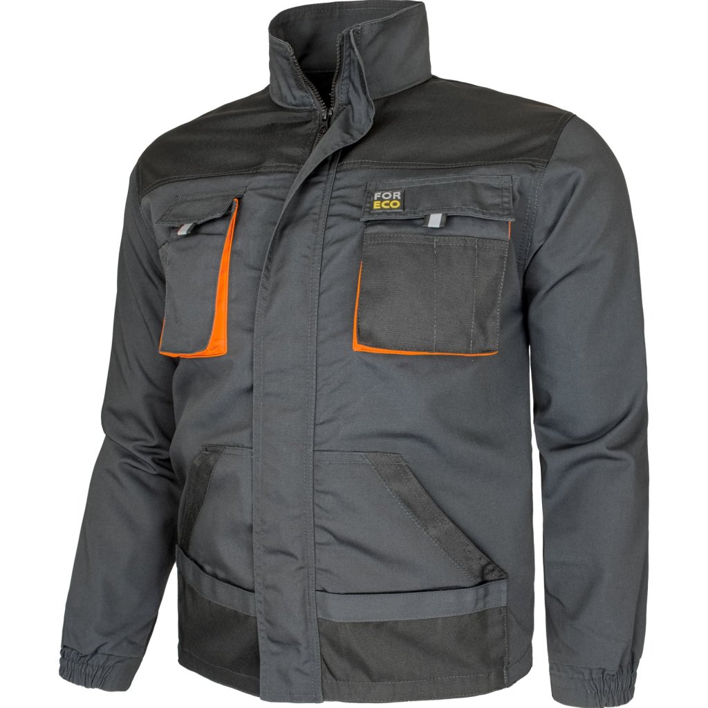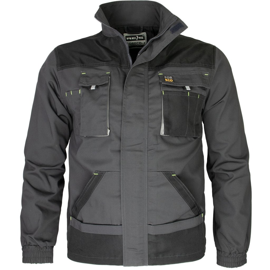 Pánska pracovná bunda. - Hlavný materiál: 80% polyester, 20% bavlna, 260 g/m² - Vložky: 100% polyester Oxford 600D, 200 g/m² - Zapínanie na zips s dodatočným suchým zipsom - Stojatý golier - Dve spodné vrecká a dve náprsné vrecká so suchým zipsom a priehradkami - Zosilnené ramená a lakte - Rebrované manžety - Strih: REGULAR - Testované na škodlivé látky v súlade s normou OEKO-TEX® 100