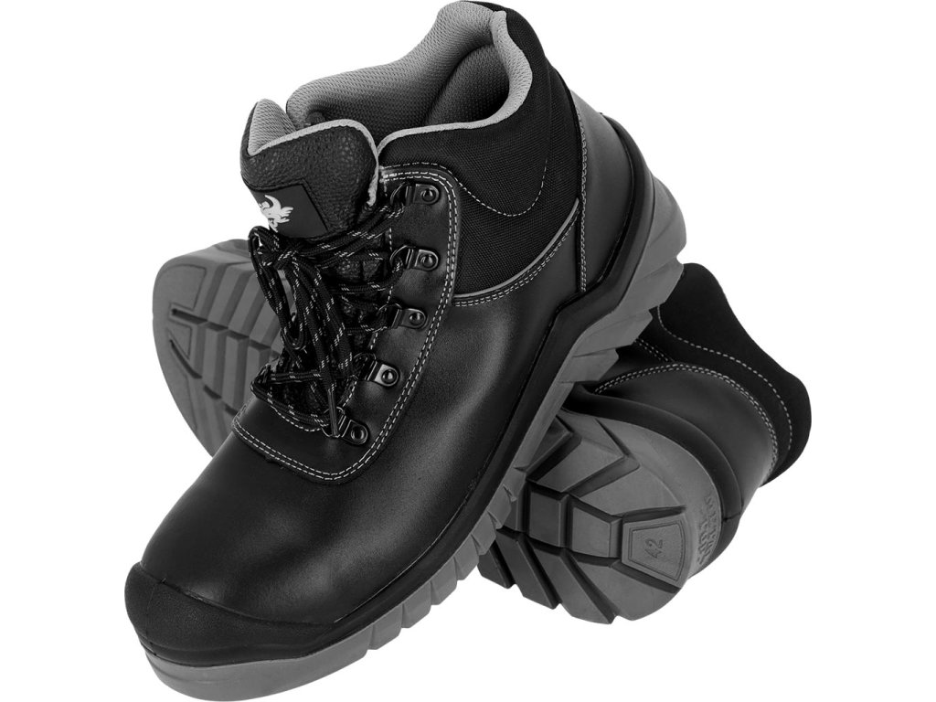 Pánska pracovná členková obuv S1 PL BOLD REIS. - vyrobená z hladkej byvolej kože - členkové topánky, ktoré zakrývajú členok - šnurovanie - protišmyková, olejuvzdorná a antistatická podrážka vyrobená z polyuretánu s dvojitou hustotou - tlmenie nárazov pod pätou - nekovová, kevlarová vložka chráni chodidlo pred prepichnutím tlakom 1100 N - kompozitná špička odolná voči nárazom 200 J a tlakovým silám až 15 kN - kategória S1 PL SR FO