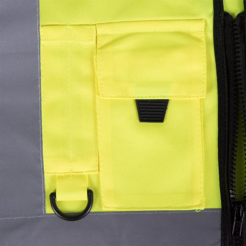 Pánska reflexná vesta predĺžená REIS. - 100 % polyesterová tkanina - gramáž 120 g/m² - zapínanie na zips - náprsné vrecká, vrátane jedného na telefón so zapínaním na suchý zips a dvoch úzkych vreciek na príslušenstvo, ako je pero, a jedného na identifikačný odznak so zapínaním na suchý zips - dve spodné vrecká so zapínaním na suchý zips - spona na kľúče - držiak na baterku - lemované lemovaním - reflexné pruhy pre zvýšenú viditeľnosť - ideálne pre cestných robotníkov
