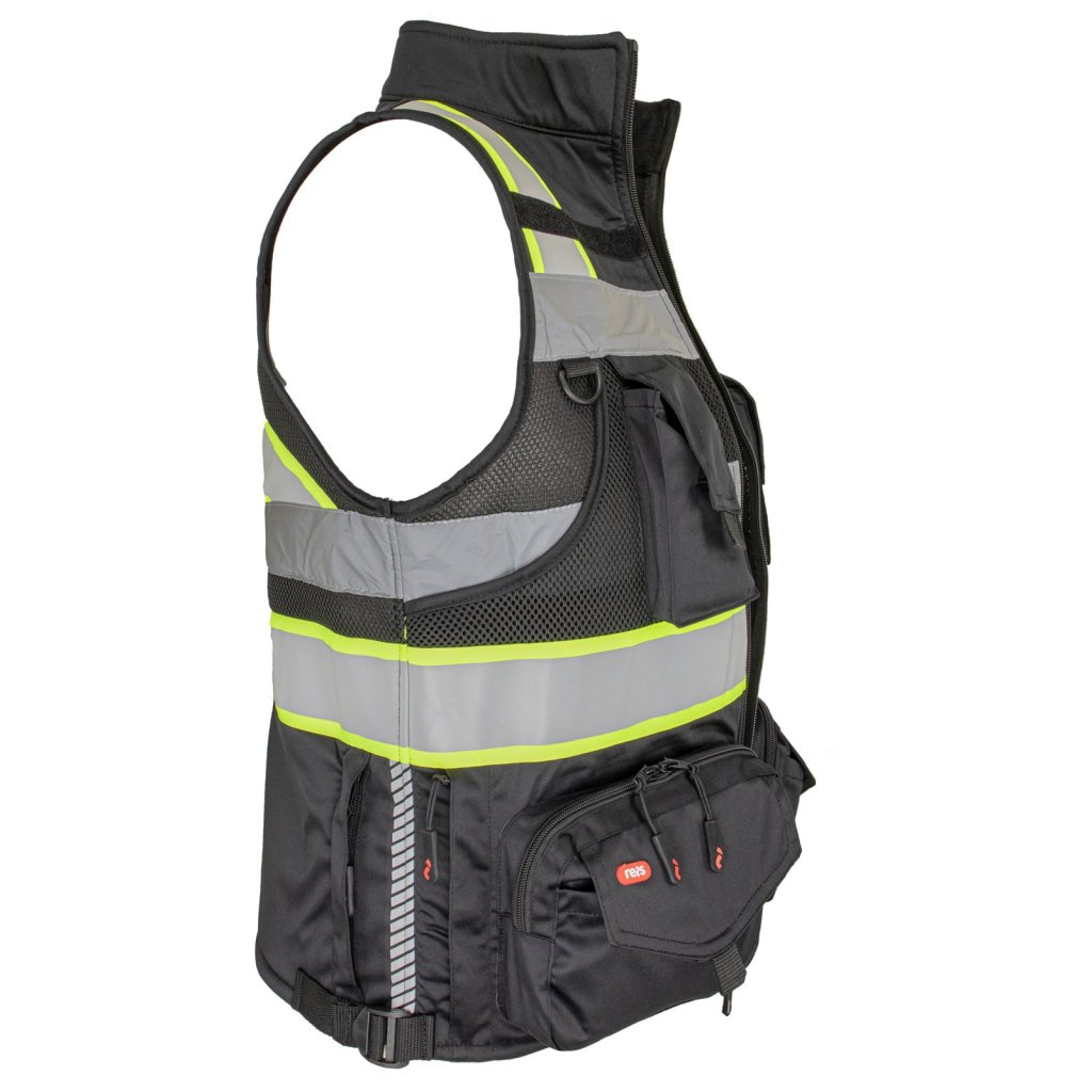 Pánska pracovná reflexná vesta REIS. - Hlavný materiál: 100 % polyesterový úplet, 160 g/m² - Sieťované vložky: 100 % polyesterový úplet, 200 g/m² - Zapínanie na zips - Dve vrecká na suchý zips a dve hlboké náprsné vrecká - Dve trojité spodné vrecká - Jedno horizontálne vrecko na zips v spodnej časti chrbta s prístupom z oboch strán - Klip na kľúče - Suchý zips na pripevnenie ďalšieho príslušenstva - Spodná časť vesty sa dá utiahnuť pomocou bočných popruhov - Fluorescenčná tkanina a reflexné prúžky 3M Scotchline zvyšujú viditeľnosť - Ideálne pre cestných príslušníkov a iných príslušníkov orgánov činných v trestnom konaní - Strih: REGULAR