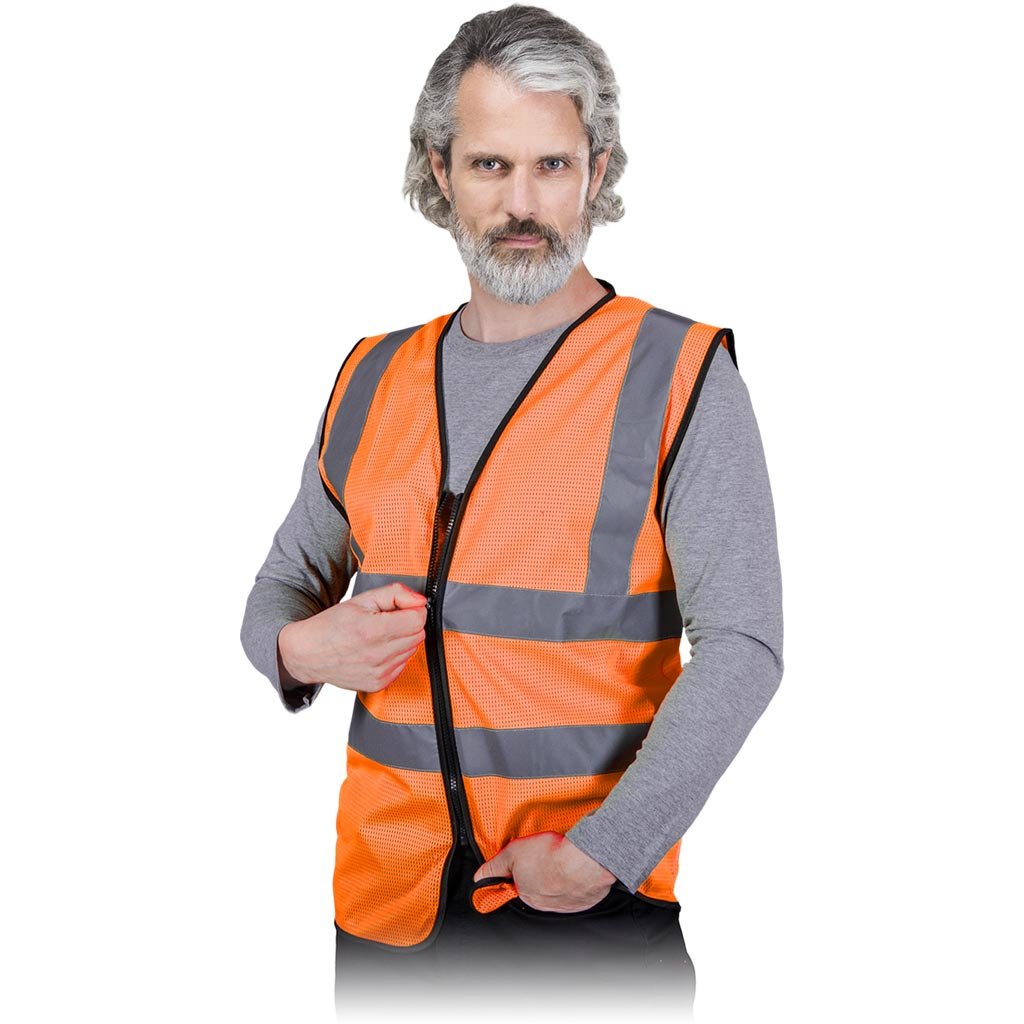 Pánska reflexná vesta zo sieťoviny REIS. - 100 % polyesterová tkanina - gramáž 130 g/m² - zapínanie na zips - čierne lemovanie - reflexné pruhy pre zvýšenú viditeľnosť - ideálna pre cestných robotníkov - bežný strih