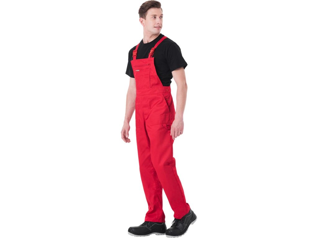 Pánske montérky na traky MASTER REIS je ako základna výbava každého majstra. - Materiál: 65 % polyester, 35 % bavlna - Gramáž: 240 g/m² - Zapínanie na gombík s chlopňou - Vrecko na zips na hrudi s ďalšími priehradkami - Dve bočné vrecká a jedno zadné vrecko - Dlhé vrecko na nohavici - Nastaviteľná dĺžka s trakmi, ktoré majú vzadu aj gumičku - Elastický pás vzadu a gombíky pre lepšie prispôsobenie - Ďalšie pútko na opasok v páse - Pútko na kladivo na ľavej nohavici