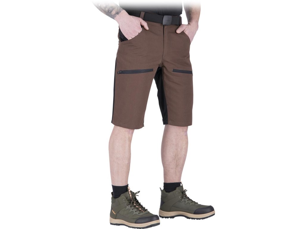 Pánske pracovné kraťasy HOBBER REIS. - Hlavný materiál: 65 % polyester, 35 % bavlnené plátno, 260 g/m² - Vložky na kolenách, horné bočné vrecká a zadný panel: 94 % polyamid, 6 % elastan, 270 g/m² - Zapínanie na gombík a zips - Dve bočné vrecká a dve zadné vrecká na zips s ďalšími chlopňami - Vrecká na zips na nohaviciach - Elastický pás vzadu pre lepšie prispôsobenie - Ideálne do práce aj na každodenné nosenie