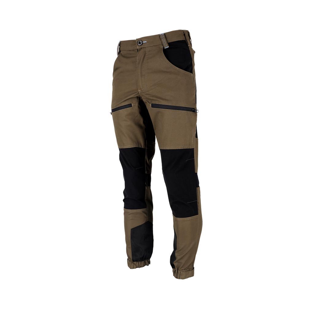Pánske pracovné nohavice do pása HOBBER REIS. - Hlavný materiál: 65 % polyester, 35 % bavlnené plátno, 260 g/m² - Vsadky na kolenách, horných bočných vreckách a na chrbte: 94 % polyamid, 6 % elastan, 270 g/m² - Doplnkové vsadky na dolnej vnútornej strane nohavíc: 100 % 600D Oxford polyester, 200 g/m² - Zapínanie na gombík a zips - Dve bočné vrecká a dve zadné vrecká na zips s ďalšími chlopňami - Vrecká na zips na nohaviciach - Elastický pás vzadu pre lepšie prispôsobenie - Nohavice so sťahovacou šnúrkou a dodatočným zapínaním na suchý zips pre nastavenie šírky - Ideálne do práce aj na každodenné nosenie