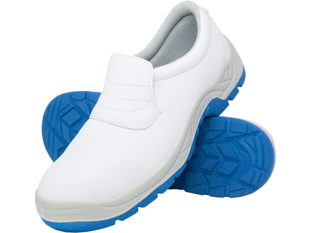 Pánske pracovné poltopánky SB biele FODREISBLUE REIS. - Vyrobená z mikrovlákna s vrchnou vrstvou z PU - Topánky v štýle mokasín, po členky - Navliekacie s jazykom na zápästí - Protišmyková a olejuvzdorná podrážka z dvojitého polyuretánu - Oceľová špička odolná voči nárazom 200 J a tlakovým silám do 15 kN - Kategória SB FO SRC - Spĺňa požiadavky noriem EN20345 a EN20344