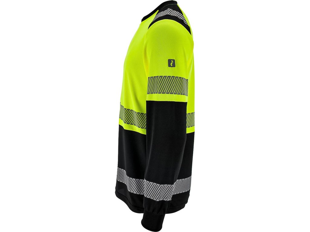 Pánske sieťované tričko s vysokou viditeľnosťou REIS. - 100 % polyesterová tkanina - gramáž 130 g/m² - okrúhly výstrih - dlhé rukávy s rebrovanými manžetami - sieťovaný materiál zaisťuje vynikajúce vetranie - fluorescenčný materiál a segmentované reflexné pruhy zvyšujú viditeľnosť