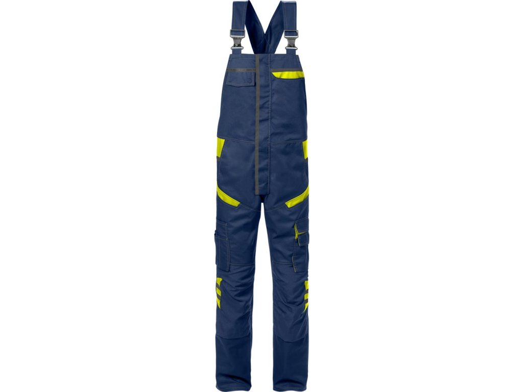 Pánske stavebné pracovné monterky na traky 1555 STFP FRISTADS. - Materiál: 65 % polyester, 35 % bavlna, 260 g/m² - Zapínanie na zips s dodatočným zapínaním na patentný patent - Dve náprsné vrecká, jedno so zapínaním na patentný patentný patent - Dve bočné vrecká a dve zadné vrecká - Vrecká na nohaviciach, dve so zapínaním na suchý zips - Vrecká na chrániče kolien - Vložky z Cordury pre zvýšenú odolnosť - Reflexné prvky - Nohavice s moderným dizajnom pre pracovníkov v službách, priemysle a stavebníctve - Mechanicky strečová tkanina zaisťuje slobodu pohybu a pohodlie - Schválené na priemyselné pranie - Strih: REGULAR