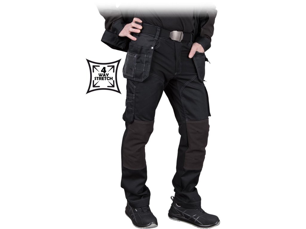 Pánske strečové pracovné nohavice do pása L.HOLLMAN. - hlavný materiál: plátnová tkanina 65% polyester, 35% bavlna, 320 g/m2 - výplne: tkanina 63% nylon, 26% polyester, 11% elastan, 240 g/m2 - výplne na vreckách: tkanina 100% polyester žakár Oxford 750D, 312 g/m2 - výplne na kolenách: tkanina vyrobená zo 4-cestnej strečovej rip-stop väzby s flísovou úpravou na vnútornej strane, 100% polyester, 340 g/m2 - 4-cestný streč - materiál, ktorý sa naťahuje všetkými smermi - rip-stop tkanina - chráni pred roztrhnutím pri zachytení o vyčnievajúci predmet - zapínanie na gombík a zips - dve bočné vrecká, dve praktické vrecká s priehradkami, pútkami a miestom na občiansky preukaz a dve zadné vrecká - vrecká na nohavice, z toho jedno dvojité a jedno dvojité pozdĺžne so pútkom a ďalšie úzke vrecko na príslušenstvo - vrecká na chrániče kolien vkladané zvnútra - profilované kolená - ďalšie pútko na príslušenstvo so zapínaním na suchý zips - určené pre fitkárov - strih: SLIM - testované na obsah škodlivých látok v súlade s normami OEKO-TEX® Standard 100