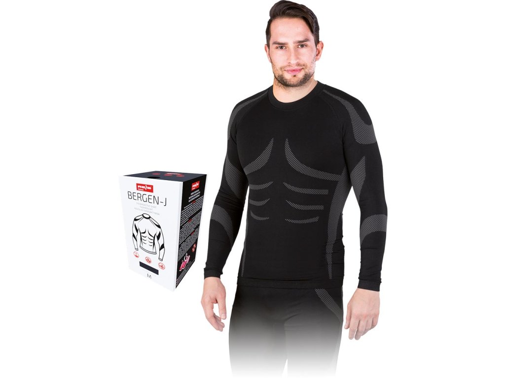 Pánske termo tričko BERGEN REIS. - Materiál: 56 % nylon, 29 % polyester, 15 % elastan - Gramáž: 220 g/m² - Zaisťuje optimálnu telesnú teplotu a pohodlie - Moderný dizajn - Presne sa prispôsobí tvaru tela, poskytuje termoreguláciu aj mechanickú ochranu a zároveň umožňuje neobmedzený pohyb - Rebrované manžety na rukávoch - Balené v krabici pre pohodlné vystavenie