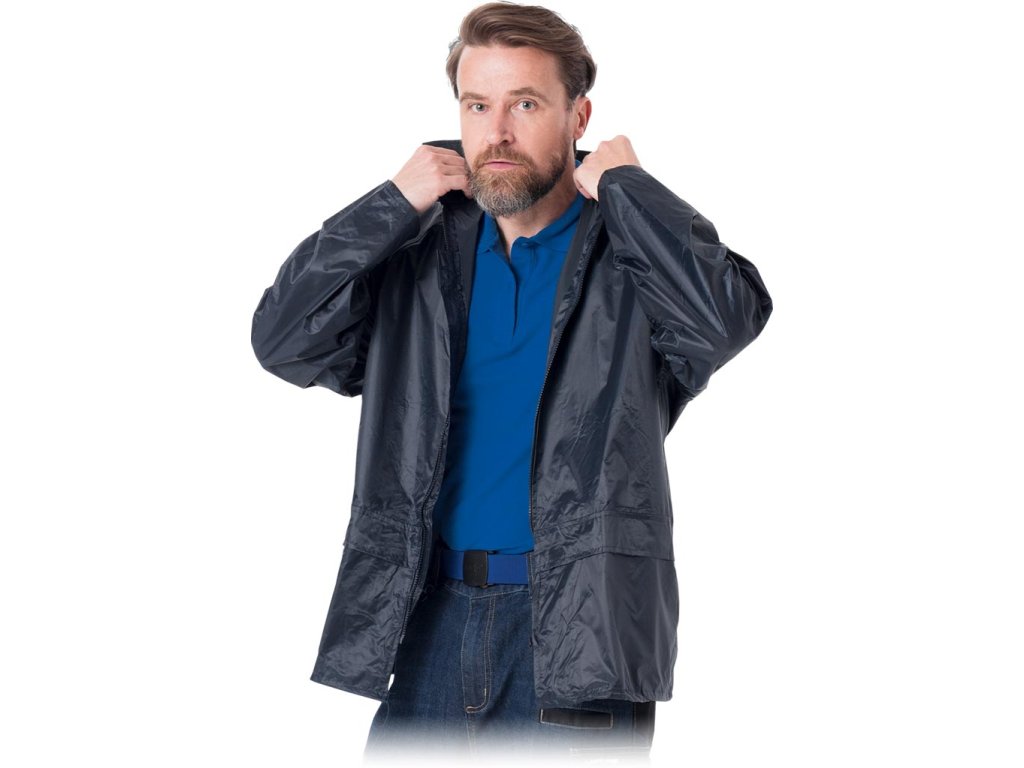 Pánsky pracovný pršiplášť REIS. - Materiál: 100 % polyester s PVC záterom na vnútornej strane - Gramáž: 160 g/m² - Zapínanie na zips - Stojatý golier - Kapucňa so sťahovacími šnúrkami, ktoré sa dajú vyhrnúť a skryť v golieri - Dve spodné vrecká s klopami - Rukávy so zapínaním na patentné gombíky - Spodná časť bundy sa dá stiahnuť pomocou sťahovacích šnúrok - Vetrací systém na chrbte a pod pazuchami umožňuje cirkuláciu vzduchu a zvyšuje pohodlie - Švy dodatočne podlepené zvnútra páskami, aby sa zabránilo vniknutiu vody - Balené vo vrecku s rozmermi: 31 x 26,5 x 3 cm - Štýl: RELAXED
