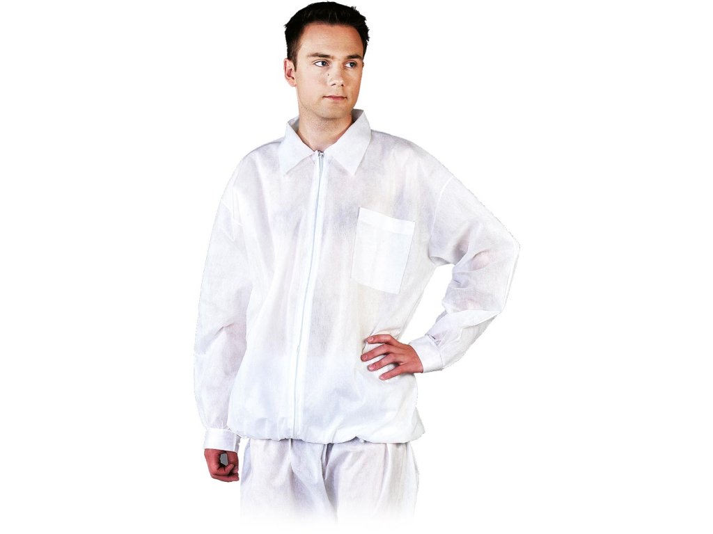 Pánsky zdravotnícky plášť REIS. - gramáž 50 g/m² - zapínanie na zips - golier pri krku - manžety na rukávoch a rebrovaný spodný lem - chráni pred nečistotami - ideálna pre kozmetický, lekársky a chemický priemysel - používa sa na prácu v laboratóriách a potravinárskom priemysle