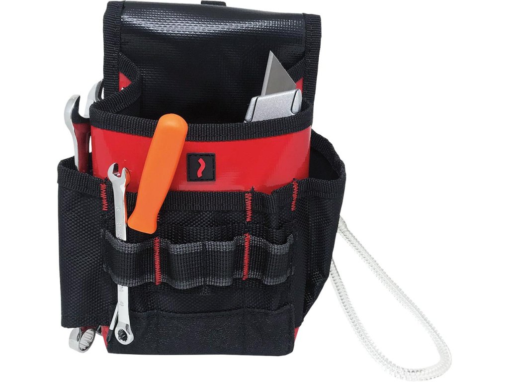 Plátené vrecko na náradie REIS - Vyrobené z polyesteru - Vnútorné vrecko s PVC povlakom - Sedem vreciek na náradie: jedno veľké a šesť menších - Zapínanie na popruhy vo vnútri aj zvonku tašky na náradie - Pripevňuje sa na opasok, prídavná kovová rukoväť - Elastická šnúrka na boku - Ideálne pre montérov