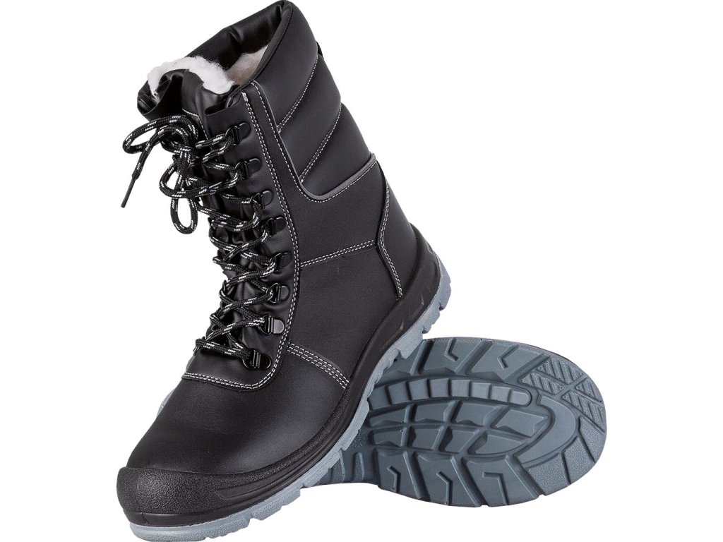 Pánska poloholeňová pracovná obuv S3 NORDREIS. - Vyrobená z nepremokavej hovädzej kože - Topánky v štýle čižiem, ktoré zakrývajú členok a časť lýtka - Zapínanie na šnurovanie - Izolovaná ovčou kožou - Protišmyková, olejuvzdorná, antistatická polyuretánová podrážka - Tlmenie nárazov pod pätou - Oceľová vložka chráni chodidlo pred prepichnutím tlakom 1100 N - Oceľová špička odolná voči nárazom 200 J a tlakovým silám až 15 kN - Gumový povlak zabraňuje oderu špičky pri trení o zem - Ďalšie reflexné prvky po stranách obuvi - Kategória S3 SRC - Spĺňa požiadavky noriem EN20345 a EN20344