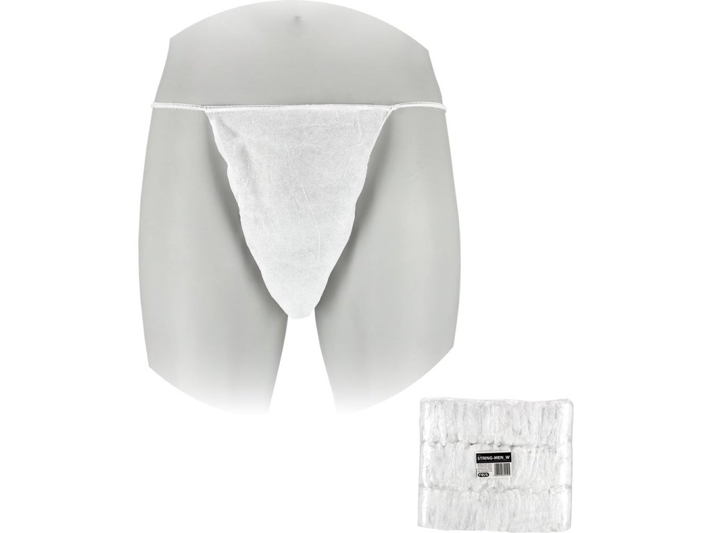 Jednorazové pánske tangá. - Látka: 100% polypropylén - Gramáž: 35 g/m² - Elastické lemovanie - Navrhnuté pre použitie v kozmetických salónoch, masážnych salónoch, wellness centrách, zdravotníckych zariadeniach, rezortoch, hoteloch, sanatóriách a kúpeľoch - Nesmie chýbať v každom salóne a kozmetickom salóne, ktorý ponúka telové ošetrenia - Zabezpečuje hygienu a pohodlie - Balené 100 kusov v krabici, každý jednotlivo zabalený vo vreckuDodatočné parametre