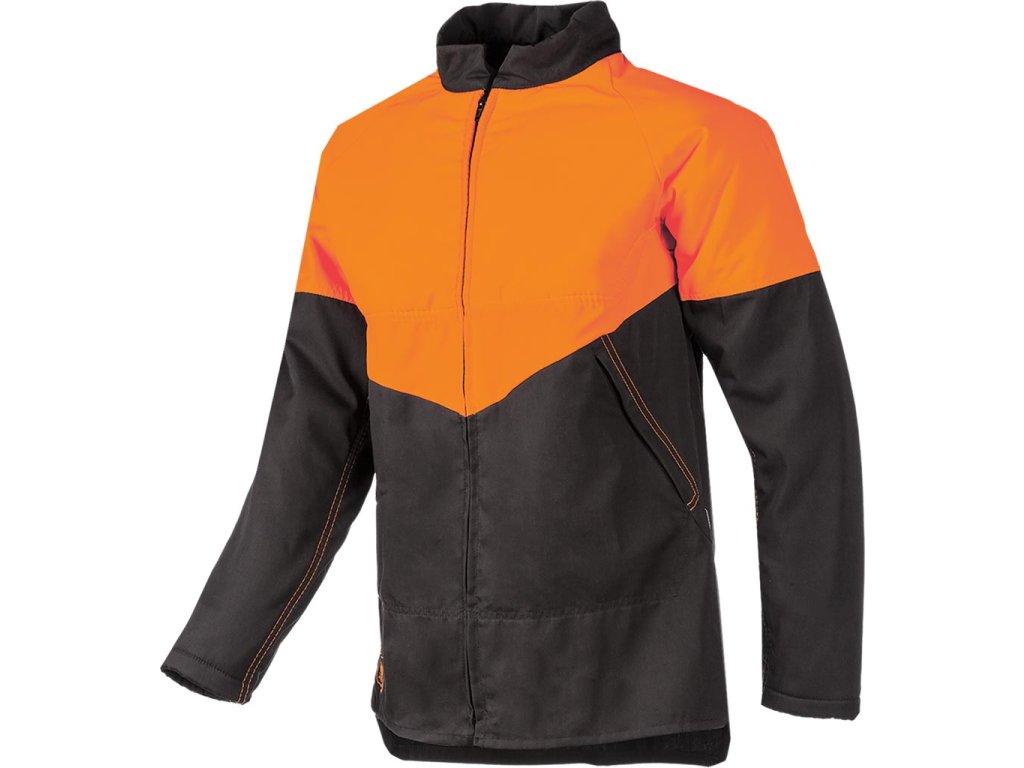 Nepremokavá pracovná bunda PORTET vhodná pre pilčíkov. - 65 % polyester, 35 % bavlna - gramáž 210 g/m² - zapínanie na zips - rukávy so zapínaním na patentný patent - stojatý golier - dve vonkajšie vrecká na zips - predĺžený chrbát chráni pred vetrom a poskytuje dodatočné teplo - vetrací systém na chrbte