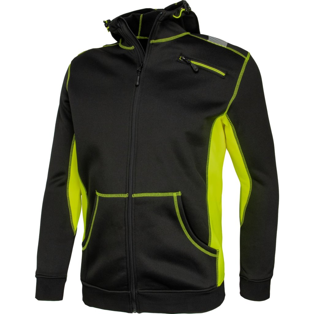 Pracovná mikina pre mužov s reflexným pruhom L.HOLLMAN. - 100 % polyesterová podšívka z flísu - gramáž 300 g/m² - zapínanie na zips - kapucňa so sťahovacími šnúrkami - dve spodné vrecká a jedno náprsné vrecko na zips - rebrované manžety a lem - segmentované reflexné pruhy - strih: REGULAR