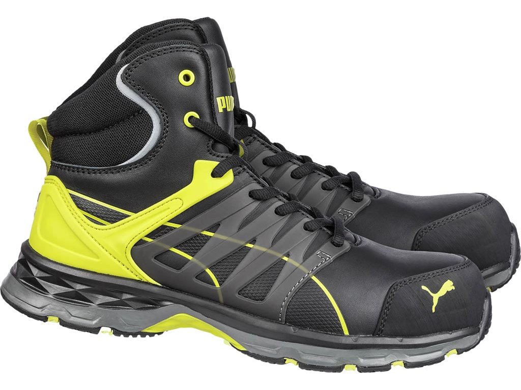 Pracovná obuv S3 PUMA VELOCITY 2.0 YELLOW MID S3 ESD HRO SRC. - vyrobená z vysoko kvalitnej kože s TPU výstužou - topánky po členky - laminátová špička - reflexný materiál v oblasti päty - podrážka MOTION IMPULSE-300°C z gumy, tepelne odolná, protisklzová - medzipodrážka IMPULSE.FOA - kategória S3 ESD HRO SRC - spĺňa požiadavky noriem EN20345 a EN20344