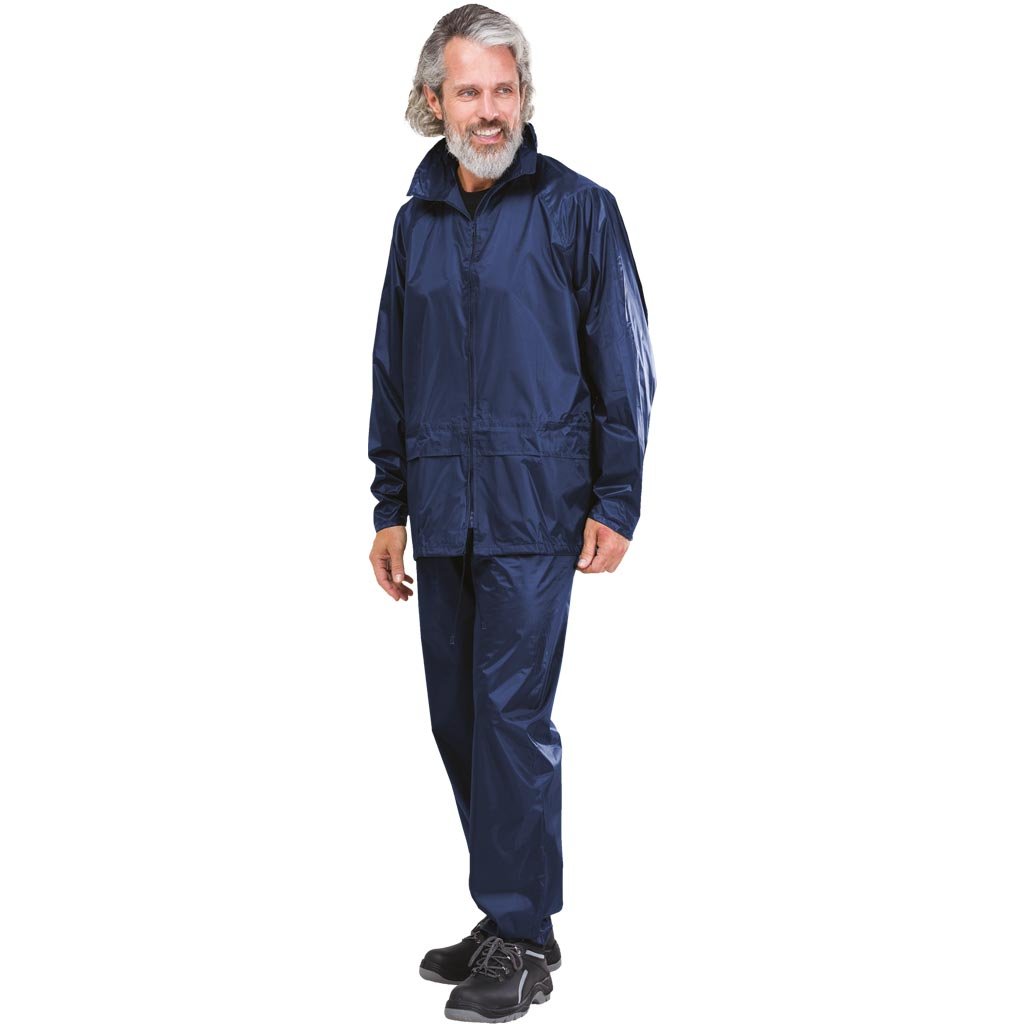 Súprava do dažďa nepremokavá obsahuje nohavice po pás a tkanú bundu REIS. - 100 % polyester/PVC - Súprava je balená vo vrecku, ktoré možno použiť na prepravu ďalších predmetov. - Bunda: na zips, kapucňa so sťahovacími šnúrkami skrytými v golieri. Ďalšie zapínanie na rukávoch umožňuje ich utiahnutie a ochranu pred vodou. Sťahovacie šnúrky v spodnej časti bundy. - Nohavice po pás: zakončené elastickým pásom. Dve bočné vrecká. Ďalšie zapínanie v spodnej časti nohavíc umožňuje stiahnutie otvorov pre nohy, aby sa znížilo riziko vniknutia vody alebo vetra. - Spĺňa požiadavky normy EN343.