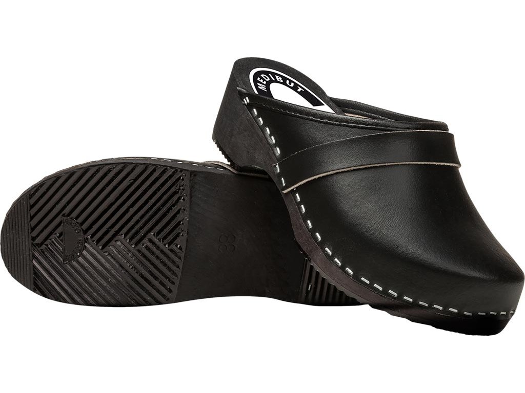 Lekárske papuče (dreváky). - Drevená podošva s ortopedickým profilom - Zvršok vyrobený z prírodnej kože s povrchom odolným voči praniu - Protišmyková podrážka odolná voči olejom, rastlinným tukom a živočíšnym tukom - Spodná časť podšitá protišmykovým kopolymérom - Spĺňa požiadavky normy EN20347Dodatočné parametre