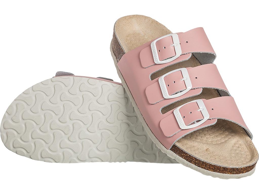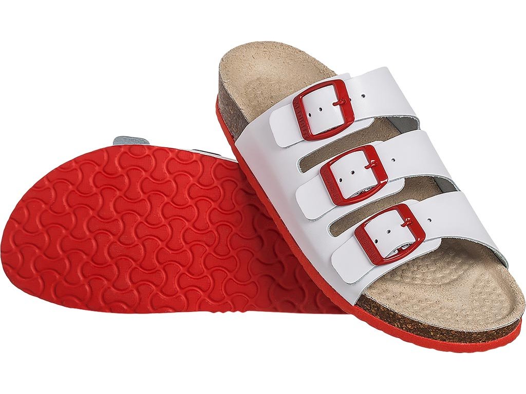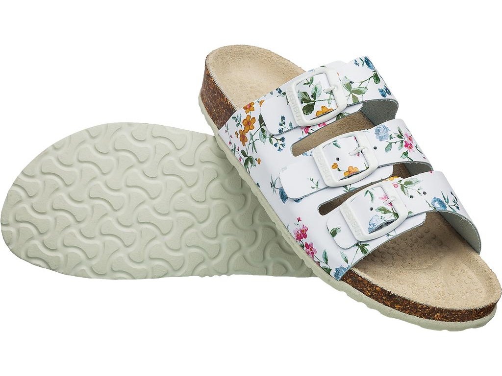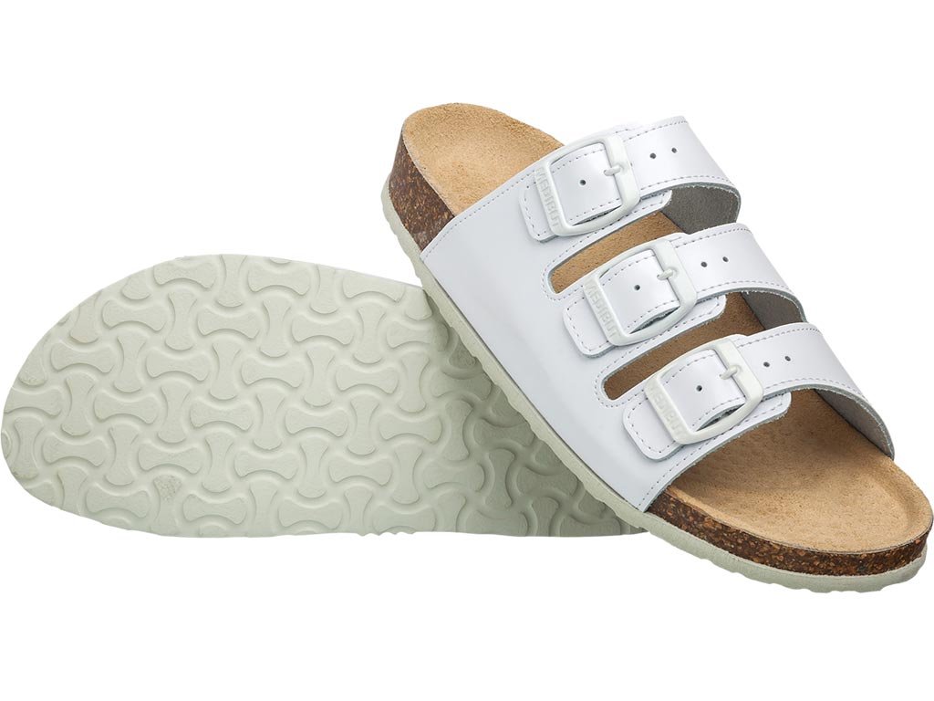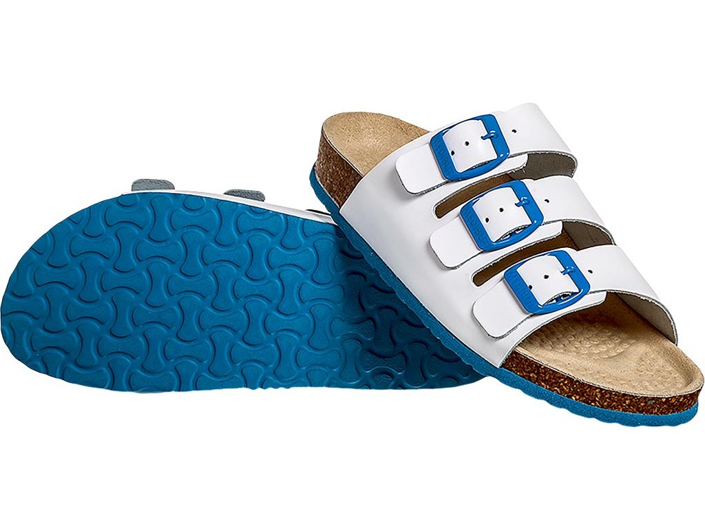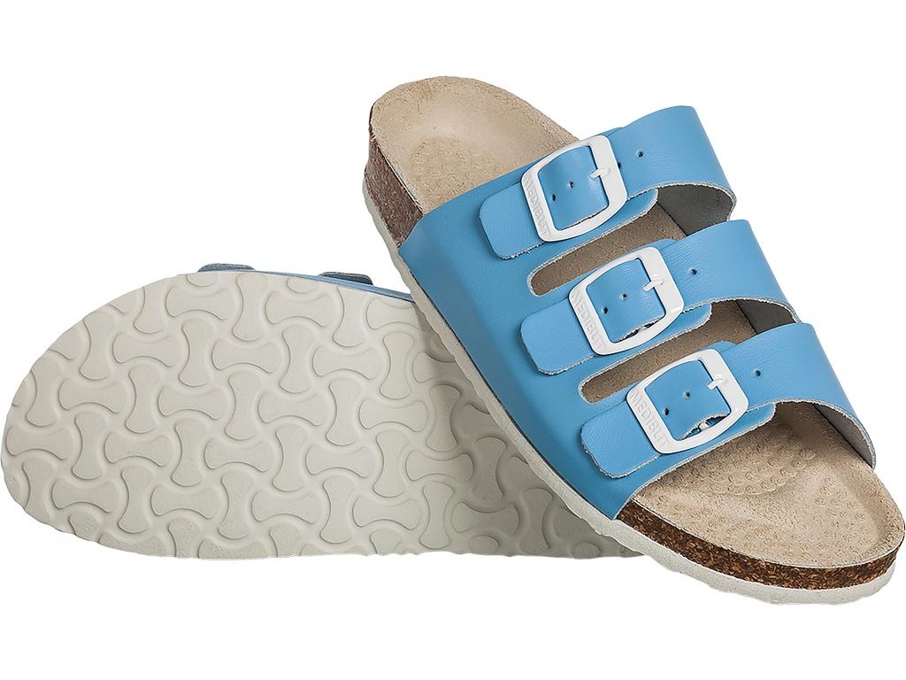 Obuv s korkovou a gumenou stielkou. - Úplný ortopedický profil - Kožený zvršok s umývateľným a dezinfikovateľným povlakom - Nastaviteľný strih vďaka trom popruhom s prackou - Protišmykový nášľap na podrážke - Velúrová kožená podšívka - Spĺňa požiadavky normy EN20347Dodatočné parametre