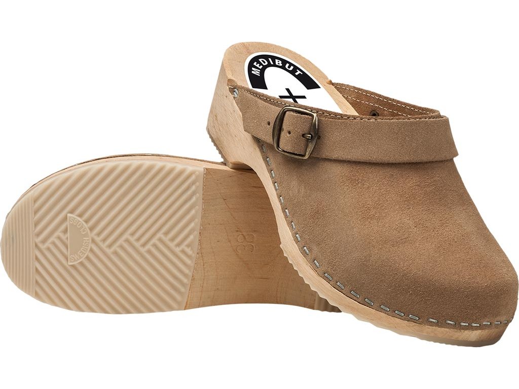 Lekárske dreváky. - Drevená podošva s ortopedickým profilom - Zvršok zo semišovej kože - Dvojúčelový remienok premiestnený na pätu - Protišmyková podrážka odolná voči olejom, rastlinným tukom a živočíšnym tukom - Spodná časť podšitá protišmykovým kopolymérom - Spĺňa požiadavky normy EN20347Dodatočné parametre