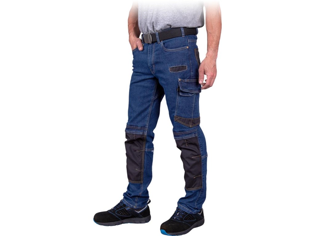 Elastické pracovné rifle do pása REIS. - Rifľová tkanina: 78 % bavlna, 20 % polyester, 2 % elastan - Gramáž: 210 – 220 g/m² - Zapínanie na gombík a zips - Dve bočné vrecká - Dve zadné vrecká, jedno s ďalšou chlopňou - Vrecká na nohaviciach vrátane vrecka na mobilný telefón - Klip na kľúče - Držiak na náradie - Vrecká na chrániče kolien - Reflexné prvky pod kolenami - Vložky z Cordury pre zvýšenú odolnosť - Elastan umožňuje lepšie prispôsobenie a zároveň neobmedzený pohyb
