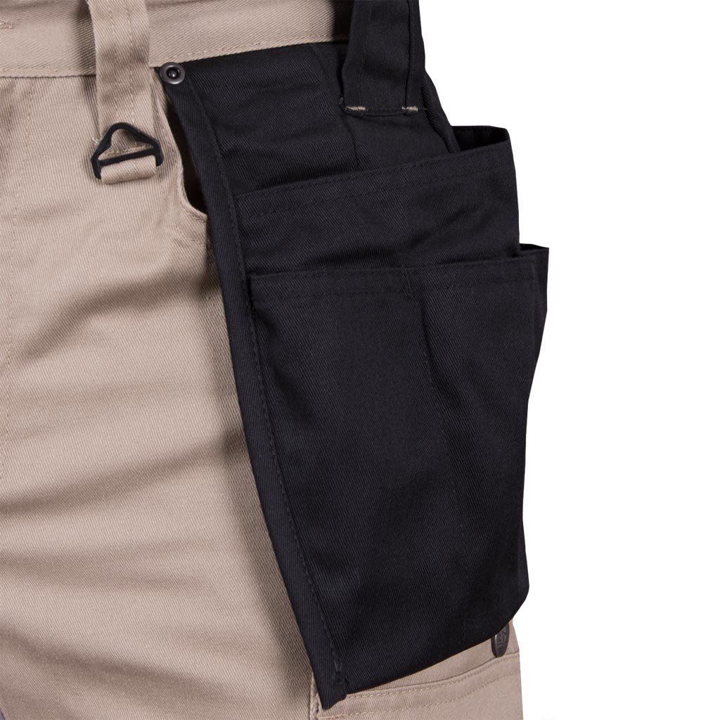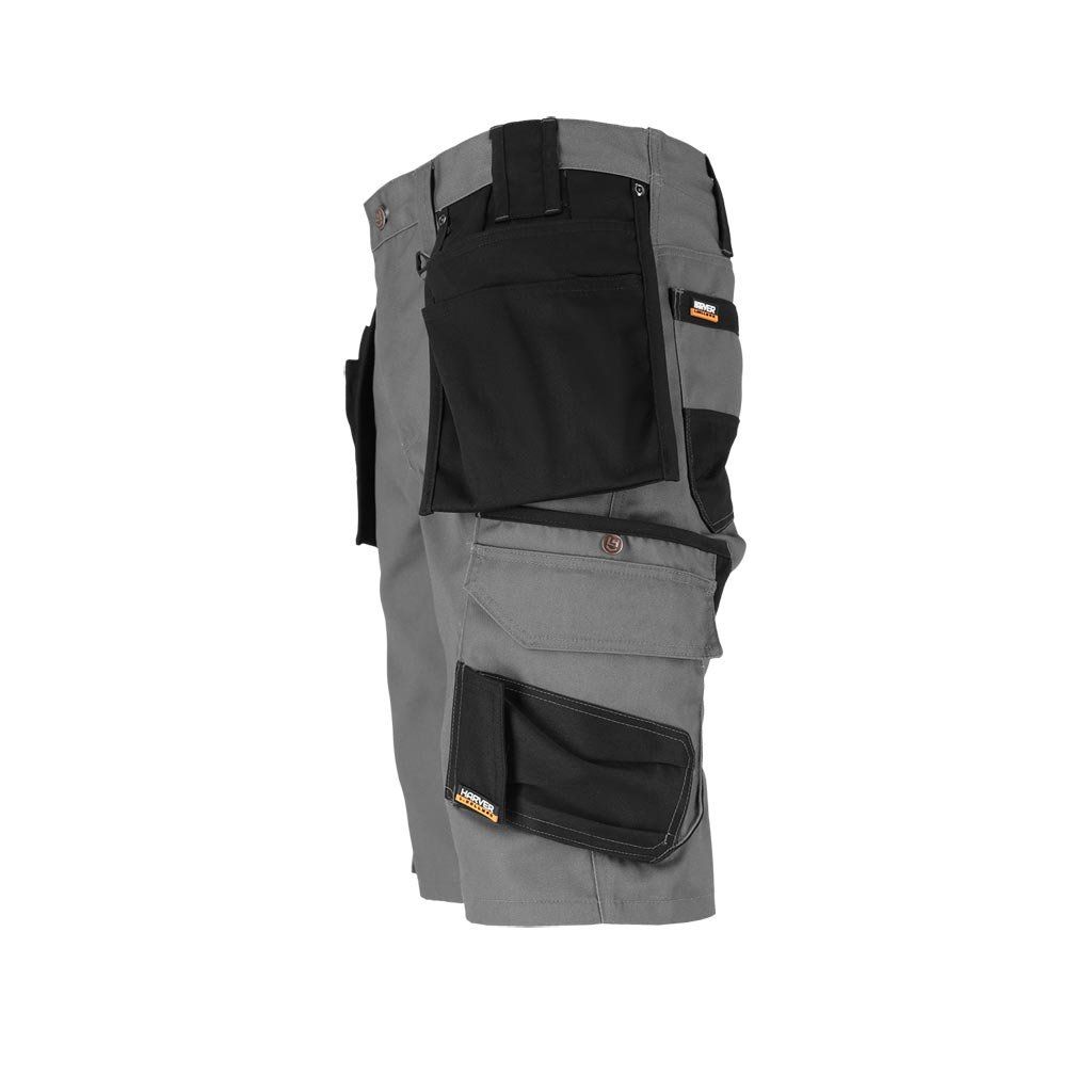 Pracovné kraťasy kapsáčové L.HOLLMAN. - Materiál: 65 % polyester, 35 % bavlna - Gramáž: 300 g/m² - Zapínanie na gombík a zips - Štyri bočné vrecká vrátane dvoch všitých vreciek - ideálne na uloženie náradia - Dve zadné vrecká, vrátane jedného so zapínaním na suchý zips - Vrecká na nohaviciach vrátane vrecka na mobilný telefón - Klip na kľúče - Testované na prítomnosť škodlivých látok v súlade s normou OEKO-TEX® 100