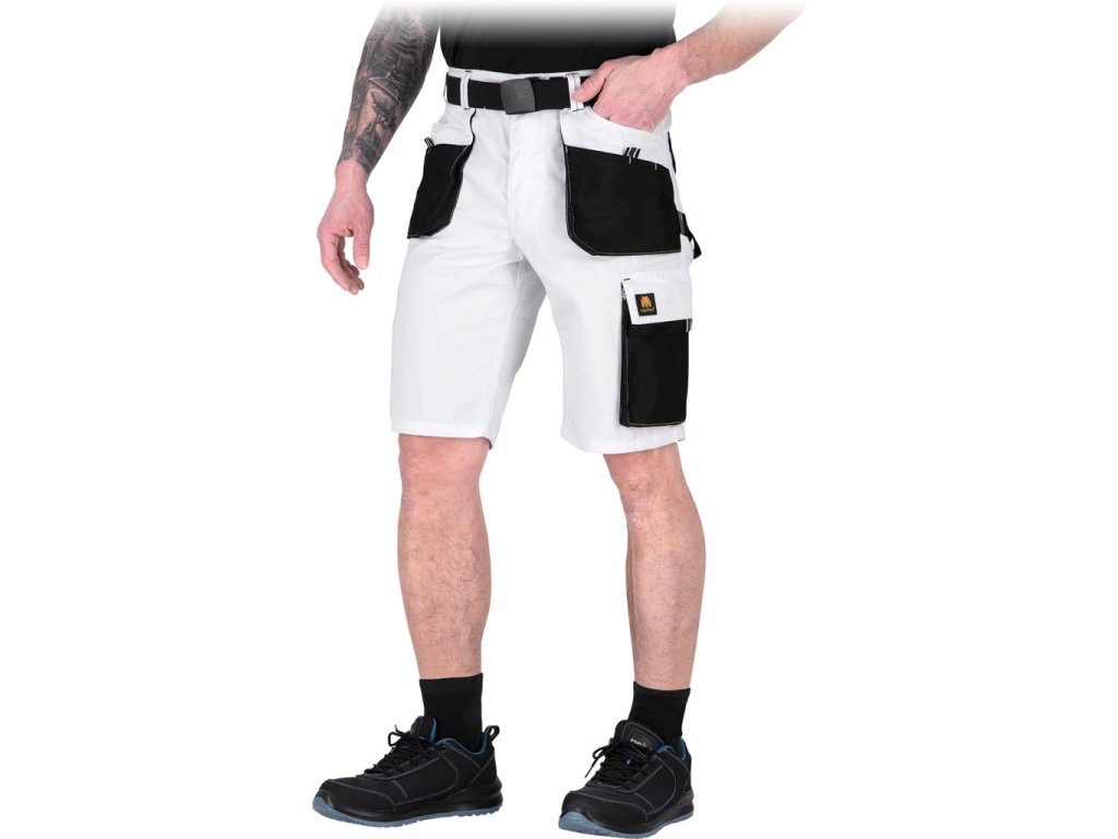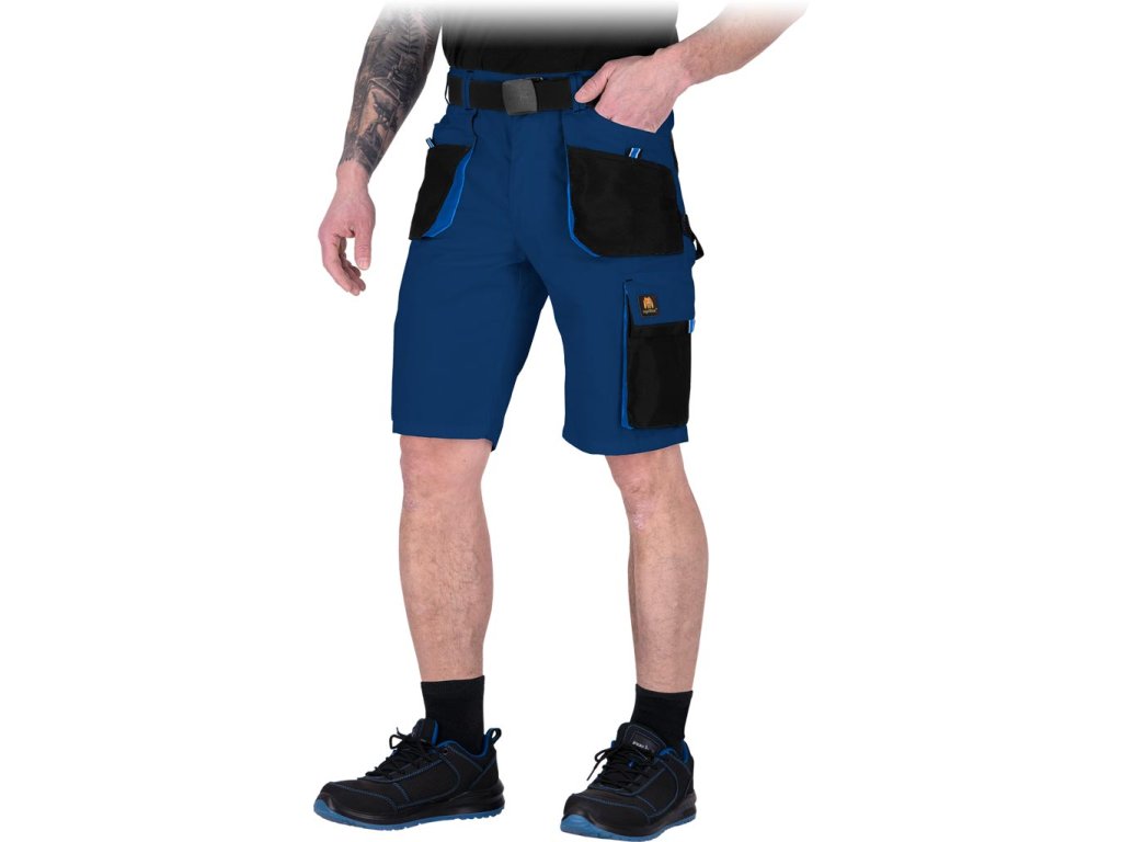 Pracovné montérkové kraťasy značky OGRIFOX mre mužov do horúcich dní v troch farbách. - Hlavný materiál: 80 % polyester, 20 % bavlnené plátno, 260 g/m² - Vsadky: 100 % polyesterová látka 600D Oxford, 200 g/m² - Zapínanie na gombík a zips - Dve dvojité bočné vrecká s priehradkami a dve zadné vrecká so zapínaním na suchý zips - Dve vrecká na nohaviciach, vrátane jedného na náradie - Elastický pás pre lepšie prispôsobenie - Slučka na kladivo na ľavej nohavici - Strih: REGULAR