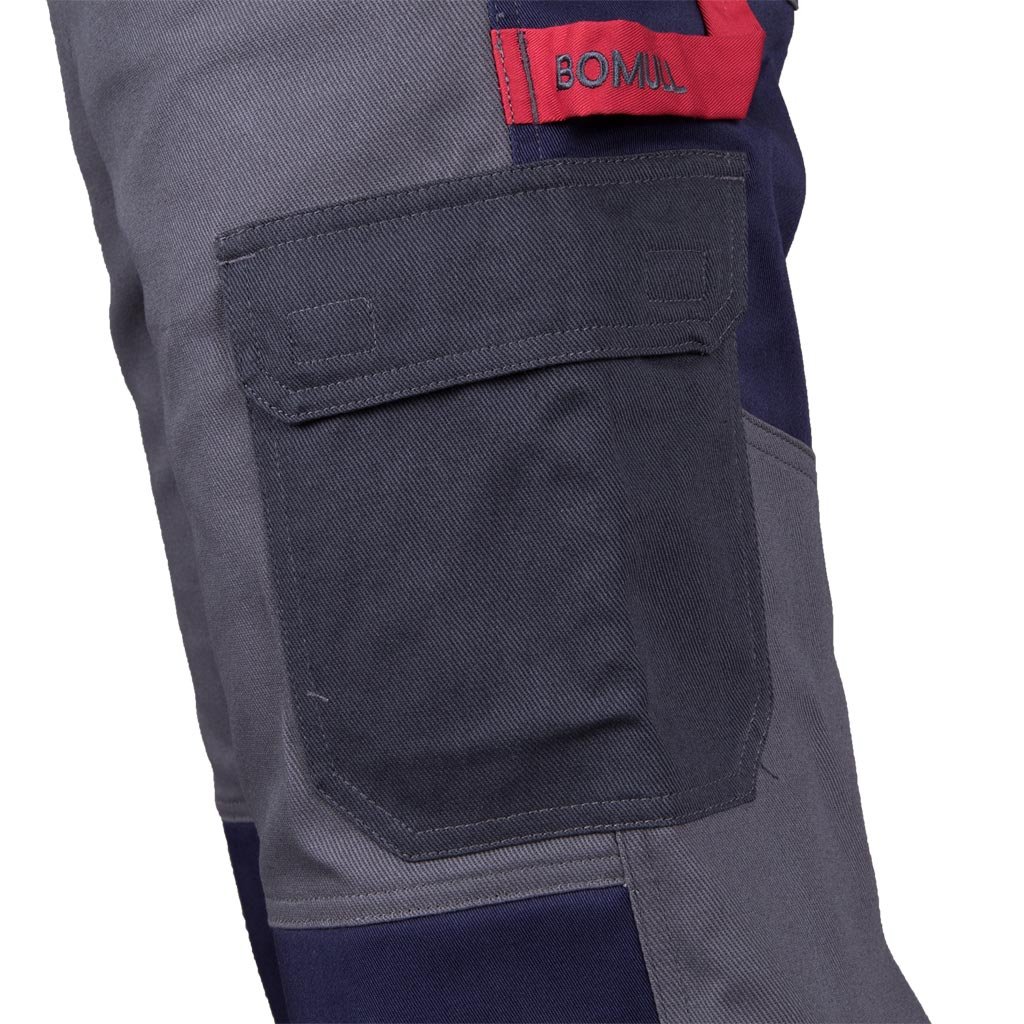 Pánske pracovné montérky do pása BOMBER REIS .- Materiál: 100 % bavlna, 260 g/m² - Vsadky z tmavomodrej farby, 62 % polyester, 34 % bavlna, 4 % spandex, 240 g/m² - Dve bočné a dve zadné vrecká - Tri vrecká na nohaviciach, vrátane jedného so zapínaním na suchý zips - Elastický pás na bokoch pre väčšiu voľnosť pohybu a lepšie prispôsobenie - Vrecká na chrániče kolien na kolenách - Slučka na kladivo na ľavej nohavici - Vďaka použitiu spandexu nohavice lepšie priliehajú k telu bez obmedzenia pohybu - Ideálne na horúce dni
