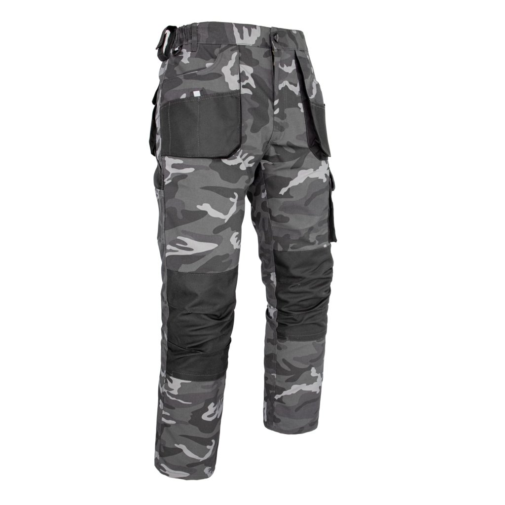 Pánske pracovné montérky do pása značky OGRIFOX ako spoľahlivý spoločník pre každého prajucúho majstra. - Hlavný materiál: 80 % polyester, 20 % bavlnené plátno, 260 g/m² - Vložky: 100 % polyesterová oxfordská tkanina 600D, 200 g/m² - Zapínanie na gombík a zips - Dve dvojité bočné vrecká s priehradkami a dve zadné vrecká so zapínaním na suchý zips - Dve vrecká na nohaviciach, vrátane jedného na náradie - Spodné vrecká na kolenné chrániče - Elastický pás pre lepšie prispôsobenie - Miesto na upevnenie kľúčov - Slučka na kladivo na ľavej nohavici - Strih: REGULAR