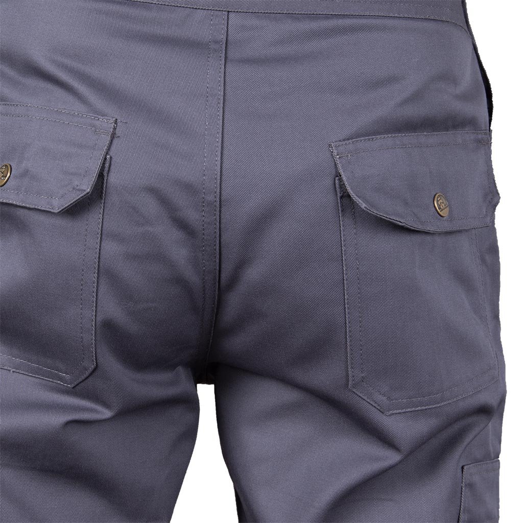 Pracovné nohavice na traky značky HOLLMAN pre mužov v rôznych farbách.. - Materiál: 65 % polyester, 35 % bavlna - Gramáž: 270 g/m² - Zapínanie na zips s chlopňou - Dvojité náprsné vrecko so zapínaním na patentný patent a ďalším priestorom - Dve bočné vrecká a dve zadné vrecká so zapínaním na patentný patent - Tri vrecká na nohaviciach, vrátane jedného dlhého s priehradkami - Vrecká na kolenné chrániče vložené zospodu - Dĺžka nastaviteľná trakmi, ktoré majú vzadu aj gumičku - Gombíky v páse pre lepšie prispôsobenie - Klip na kľúče - Strih: REGULAR