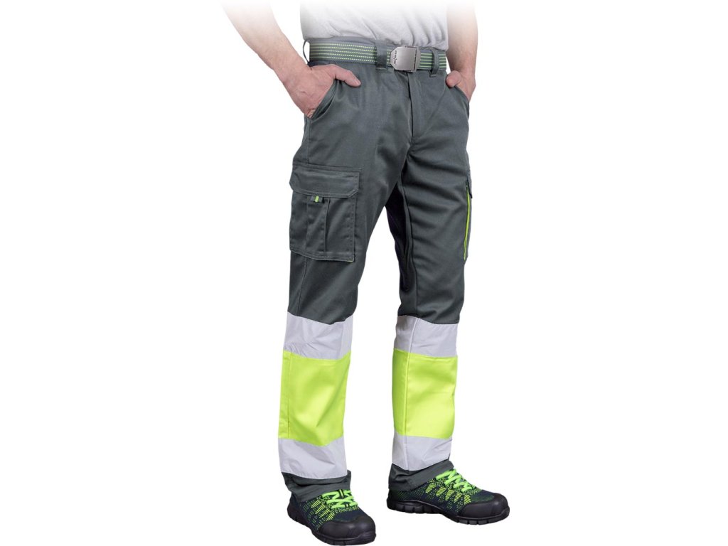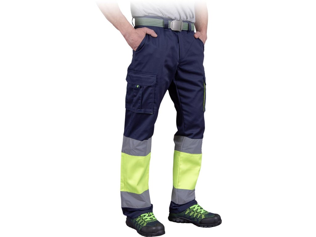 Pracovné nohavice reflexné s elastickým pásom BAX REIS. - 62 % polyester, 35 % bavlna, 3 % elastan, 240 g/m² - Kontrastné vložky 65 % polyester, 35 % bavlna, 210 g/m² - Zapínanie na gombík a zips - Dve bočné vrecká a dve zadné vrecká so zapínaním na suchý zips - Dve vrecká na nohaviciach so zapínaním na suchý zips - Elastický pás v zadnej časti zvyšuje voľnosť pohybu a umožňuje lepšie prispôsobenie - Nohavice chránia a zároveň poskytujú pohodlie počas práce - Reflexné pruhy zaisťujú lepšiu viditeľnosť - Testované na škodlivé látky v súlade s normou OEKO-TEX® 100 - Spĺňa požiadavky normy EN ISO 20471 (trieda 1)