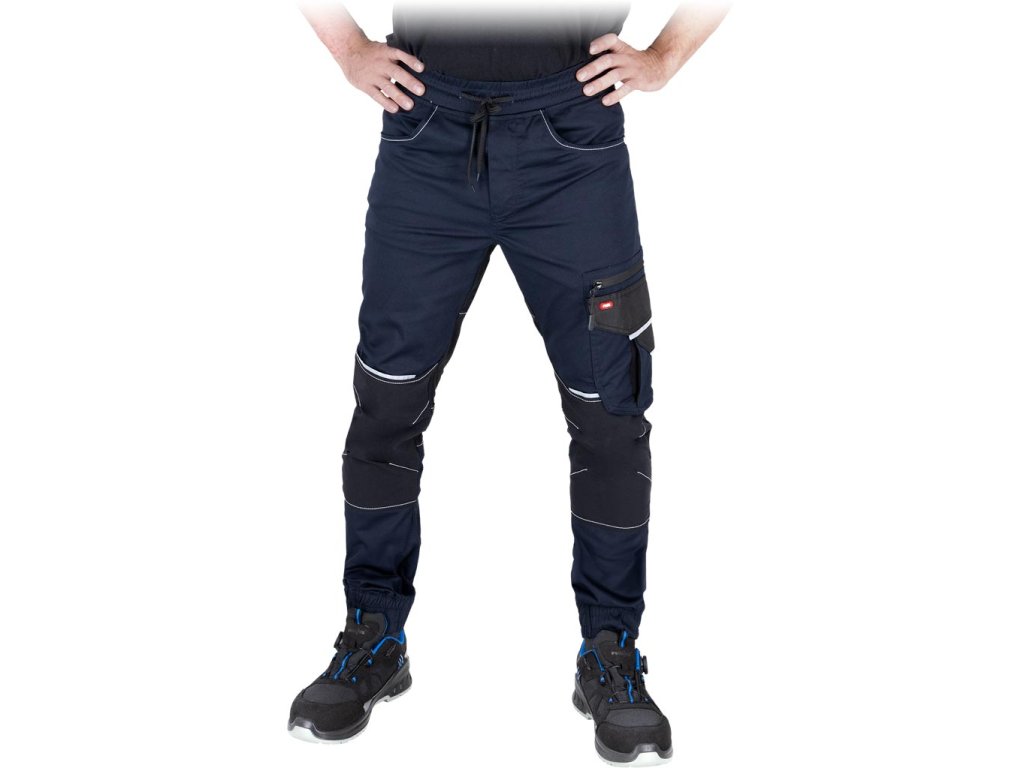 Pánske pracovné nohavice s reflexnými prvkami REIS. - Hlavný materiál: keprová tkanina 60 % bavlna, 37 % polyester, 3 % elastan, 260 g/m² - Vložky: 95 % nylon, 5 % elastan, 260 g/m² - Vložky do vreciek: 100 % polyesterová oxfordská tkanina 600D, 200 g/m² - Elastický pás s nastaviteľnými sťahovacími šnúrkami - Dve bočné vrecká a dve zadné vrecká - Dvojité vrecko na nohaviciach s priehradkou na mobilný telefón - Predtvarované kolená - Elastické manžety - Reflexné prvky pre zvýšenú viditeľnosť