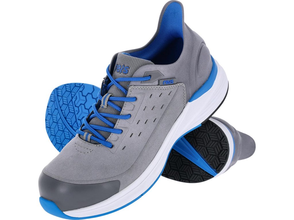 Pánske pracovné poltopánky S1P URLIK REIS. - Vyrobená zo syntetickej semišovej kože (mikrovlákna) v kombinácii s pletenou textíliou a TPU - Nízka obuv, po členky - Šnurovanie - Protišmyková, olejuvzdorná a antistatická podrážka z EVA a gumy - Tlmenie nárazov pod pätou - Nekovová kevlarová vložka chráni chodidlo pred prepichnutím tlakom 1100 N - Kompozitná špička odolná voči nárazom 200 J a tlakovým silám až 15 kN - Reflexné prvky - Kategória S1PS FO SR