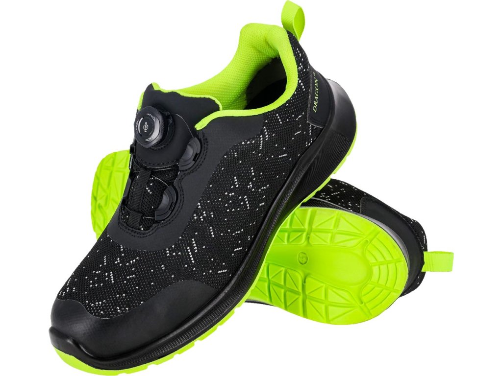 Pánske pracovné poltopánky S1PS MATRIX REIS. - Vyrobená z pleteného textilného materiálu v kombinácii so semišovou syntetickou kožou (mikrovlákno) a TPU vložkami. - Nízka obuv siahajúca nad členok. - Zapínanie systémom šnúrok. - Protišmyková, olejuvzdorná a antistatická podrážka z polyuretánu s dvojitou hustotou. - Absorpcia nárazov pod pätou. - Nekovová kompozitná vložka chráni chodidlo pred prepichnutím tlakom 1100 N. - Sklolaminátová špička odolná voči nárazom 200 J a tlakovým silám až 15 kN. - Kategória S1PS FO SR.