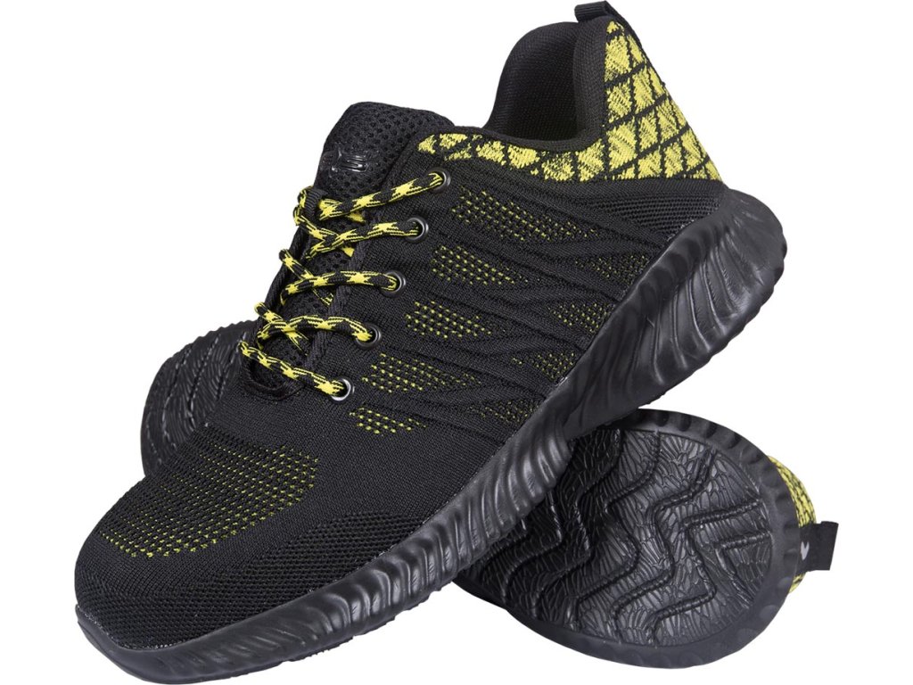 Pánske pracovné poltopánky SB PAVEL REIS. - Vyrobená z pleteného textilného materiálu - Nízka obuv, po členky - Šnurovanie - Protišmyková podrážka z EVA - Oceľová špička odolná voči nárazom 200 J a tlakovým silám do 15 kN - Odolnosť podrážky proti prepichnutiu 1100 N - Kategória SB P SRA