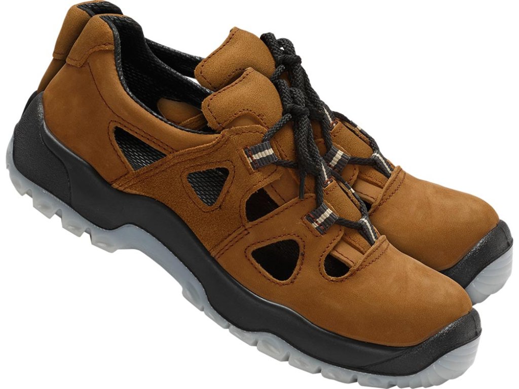 Pracovné sandále hnedé S1 PPO PP s oceľovou špičkou. - Zvršok vyrobený z nubukovej kože a velúru s vysokým koeficientom priepustnosti vodnej pary - Dvojvrstvová podrážka (PU/TPU) - nepoškriabe povrch - Ľahké, odolné a pevné, účinne vyrovnáva nerovný povrch - Vysoko odolné voči oderu, porezaniu a praskaniu - Odolné voči teplotám až do 120 °C pri krátkodobom kontakte - Absorpcia energie v pätovej časti - Tvarovaná špička podrážky poskytuje dodatočnú protišmykovú ochranu pri práci na svahoch - Mäkký golier a jazyk s penou - Vynikajúce vetranie a hygienické vlastnosti obuvi - Kovová špička chráni pred nárazmi až do 200 J alebo tlakom 15 kN - Vybavené odnímateľnou hygroskopickou podšívkou - Kategória S1 FO - Spĺňa požiadavky noriem EN20345 a EN20344