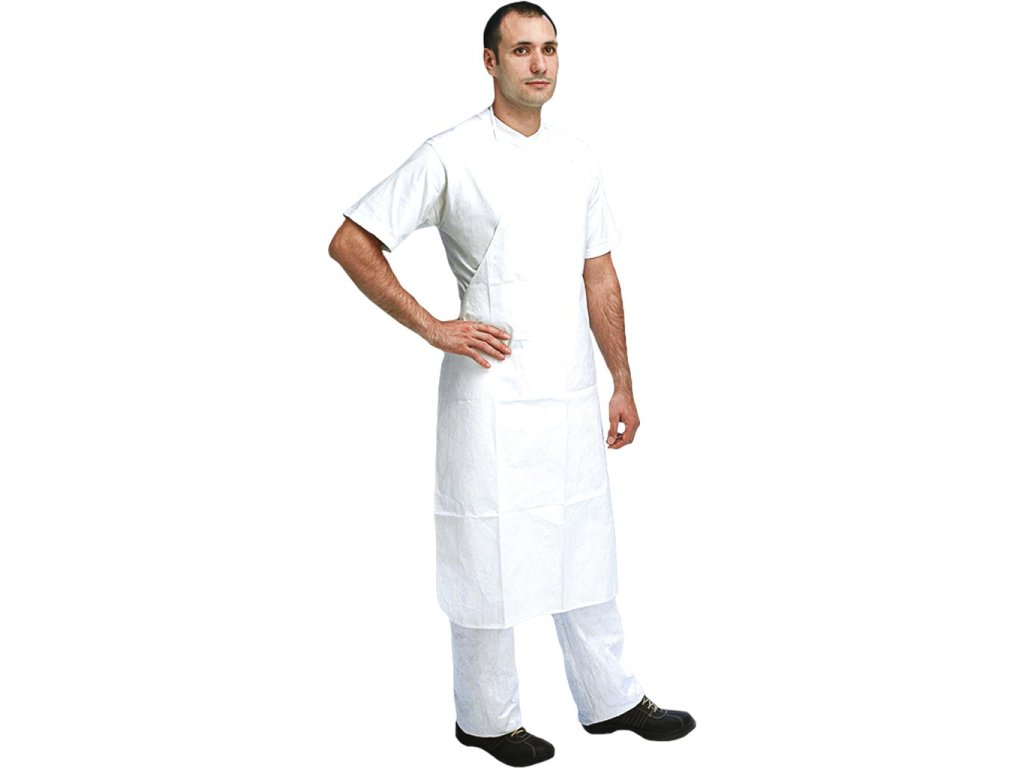 Predná zástera z materiálu Tyvek. - Dĺžka: 108 cm - S jarmom - Nosí sa okolo krku s remienkami vzadu, čo umožňuje dokonalé uchytenie - Balené po 25 kusov v kufríkuDodatočné parametre