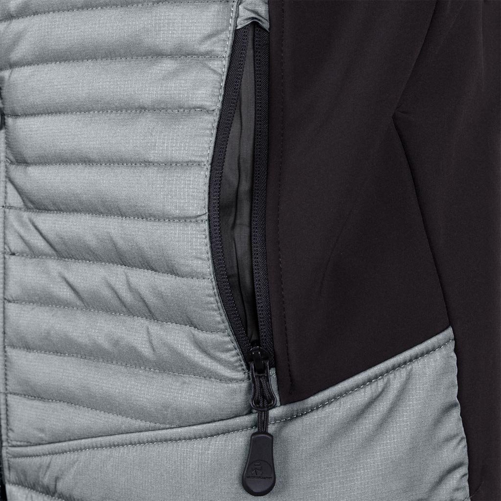 Pánska prešívaná pracovná bunda. - Hlavný materiál: 100% polyesterová rip-stop tkanina s AC záterom - Čierne výplne z trojvrstvovej softshellovej tkaniny: 94% polyester, 6% elastan, TPU membrána, 100% polyesterový fleece, 310-320 g/m² - Výplň: 100% polyester - Podšívka: 100% polyester - SOFTSHELL materiál - Chráni pred dažďom a vetrom a zároveň umožňuje pokožke dýchať - Rip-stop tkanina zabraňuje roztrhnutiu pri zachytení o vyčnievajúci predmet - Zapínanie na zips - Stojáčik - Dve spodné vrecká a jedno náprsné vrecko so zipsami - Dve vnútorné vrecká - Elastické manžety so zapínaním na suchý zips pre nastavenie šírky - Reflexné prvky zvyšujú viditeľnosť - Univerzálny dizajn je vhodný do práce aj na každodenné použitie