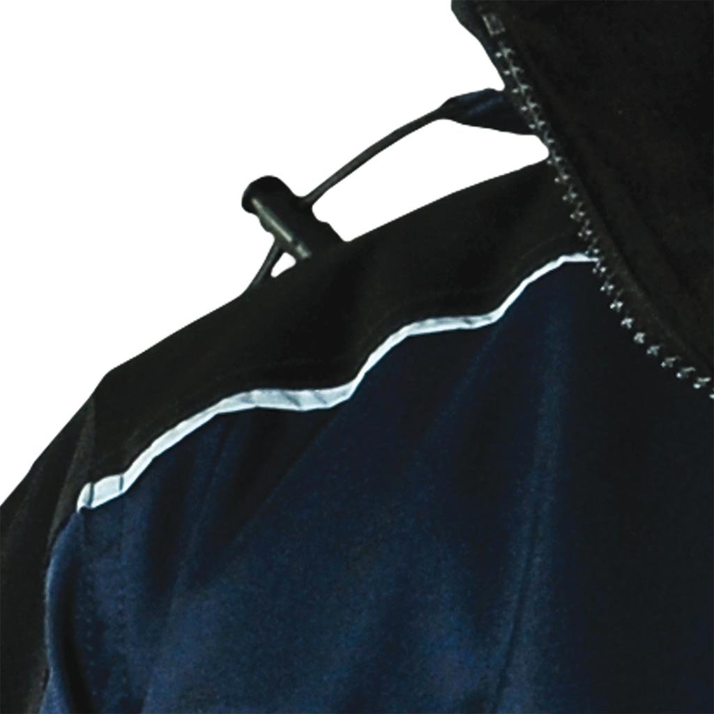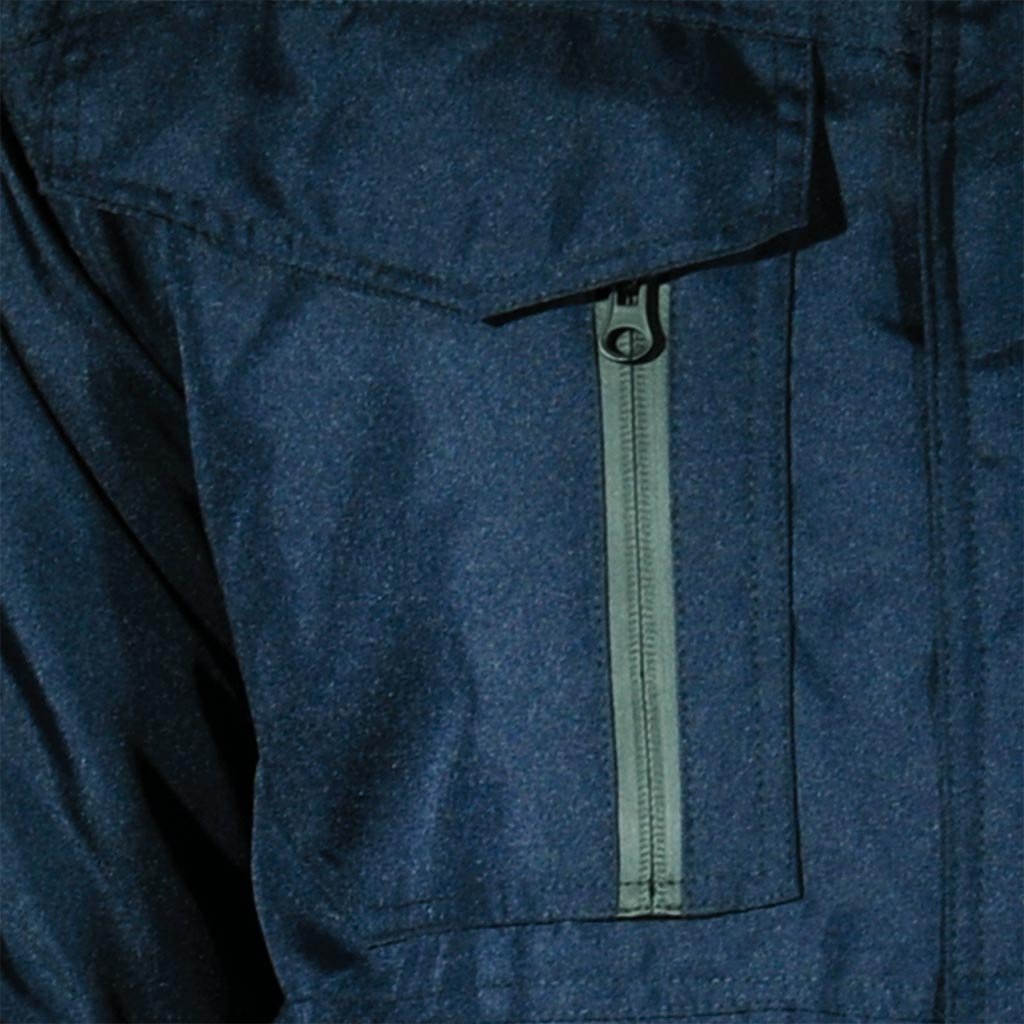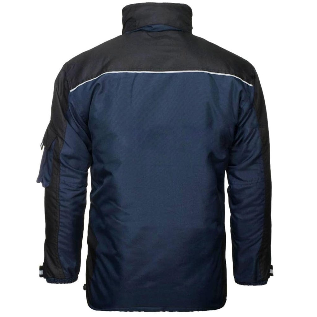 Pánska zateplená pracovná bunda. - Materiál: 100% 300D 180g/m² 100% polyester Oxford s polyuretánovým záterom - Výplň: 100% 160g/m² 100% polyester - 3/4 podšívka: 280g/m² fleece, prešívaná spodná časť: 190T polyester taft, 55g/m² - Zapínanie na zips s dodatočným zapínaním na patentný patent - Stojatý golier s fleecovou podšívkou - Kapucňa so sťahovacími šnúrkami, ktoré sa dajú zrolovať a zapnúť suchým zipsom - Dve spodné vrecká a dve dvojité náprsné vrecká - Vrecko na suchý zips na ľavom rukáve - Dve ďalšie vnútorné vrecká so zapínaním na suchý zips - Rukávy s elastickými manžetami a zapínaním na suchý zips na nastavenie šírky - Nastaviteľný spodný lem so sťahovacími šnúrkami - Reflexné prvky pre zvýšenú viditeľnosť